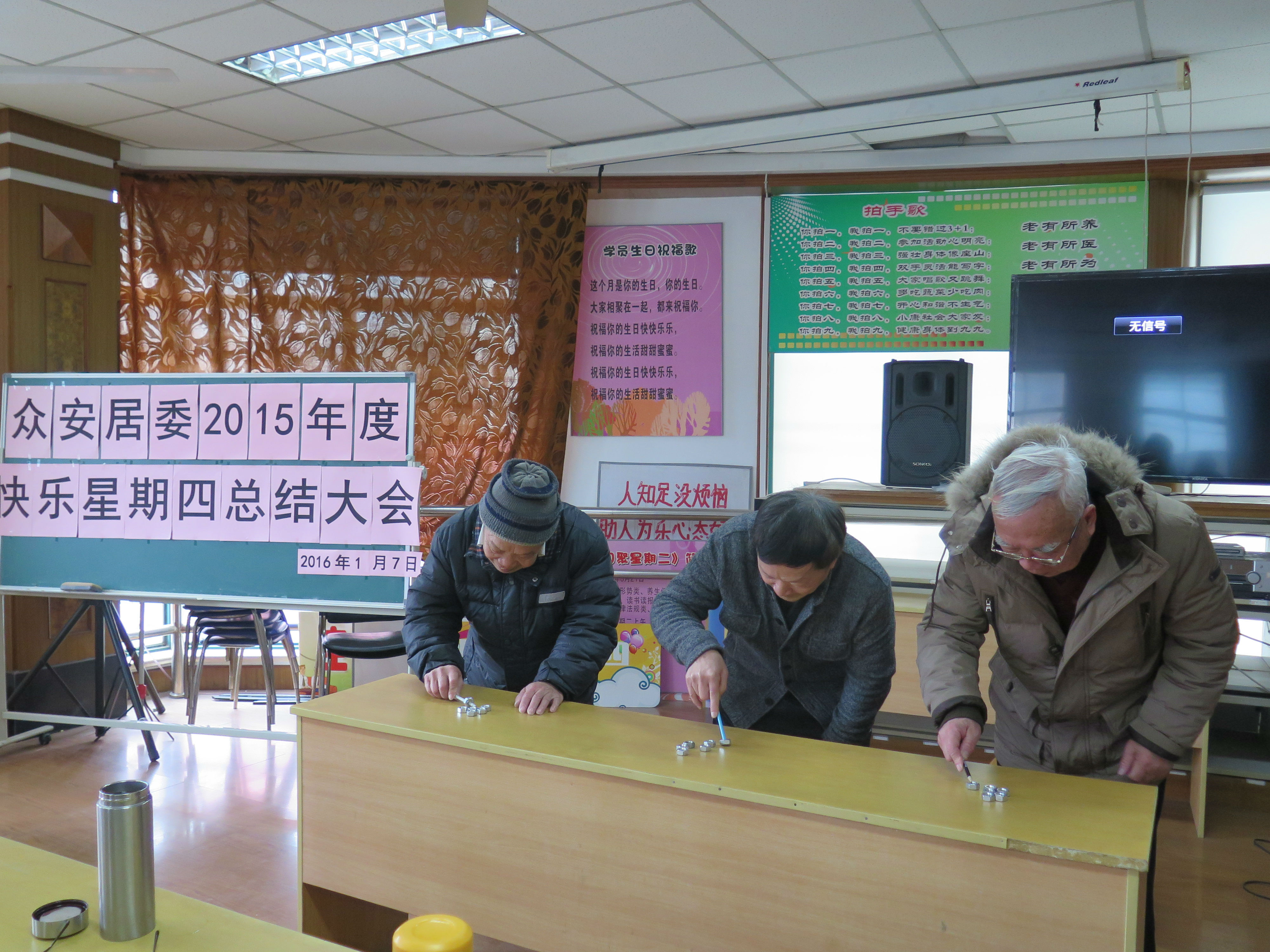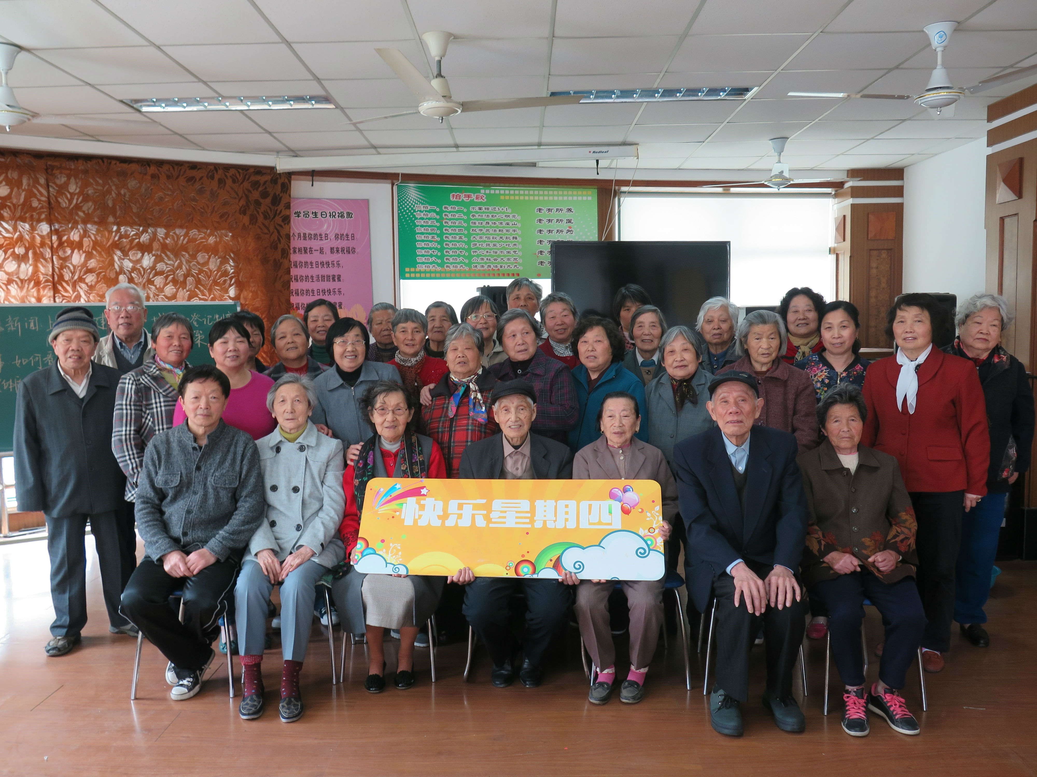 快乐星期四沙龙本着快乐、友爱、和谐的宗旨,由社区志愿者老师王以德、康海良两位老同志担任活动的老师和主持人。快乐星期四活动分为“拍手歌”、“一周时事要闻”、 “老王说事”、“保健小常识”、“每月一歌”、“自娱自乐”六个版块,以学习和娱乐相结合的形式,让老年人走出家门,融入社区,增长知识、陶冶情操、增加居民之间的交流,使老年人更好地做到老有所学、老有所乐。
