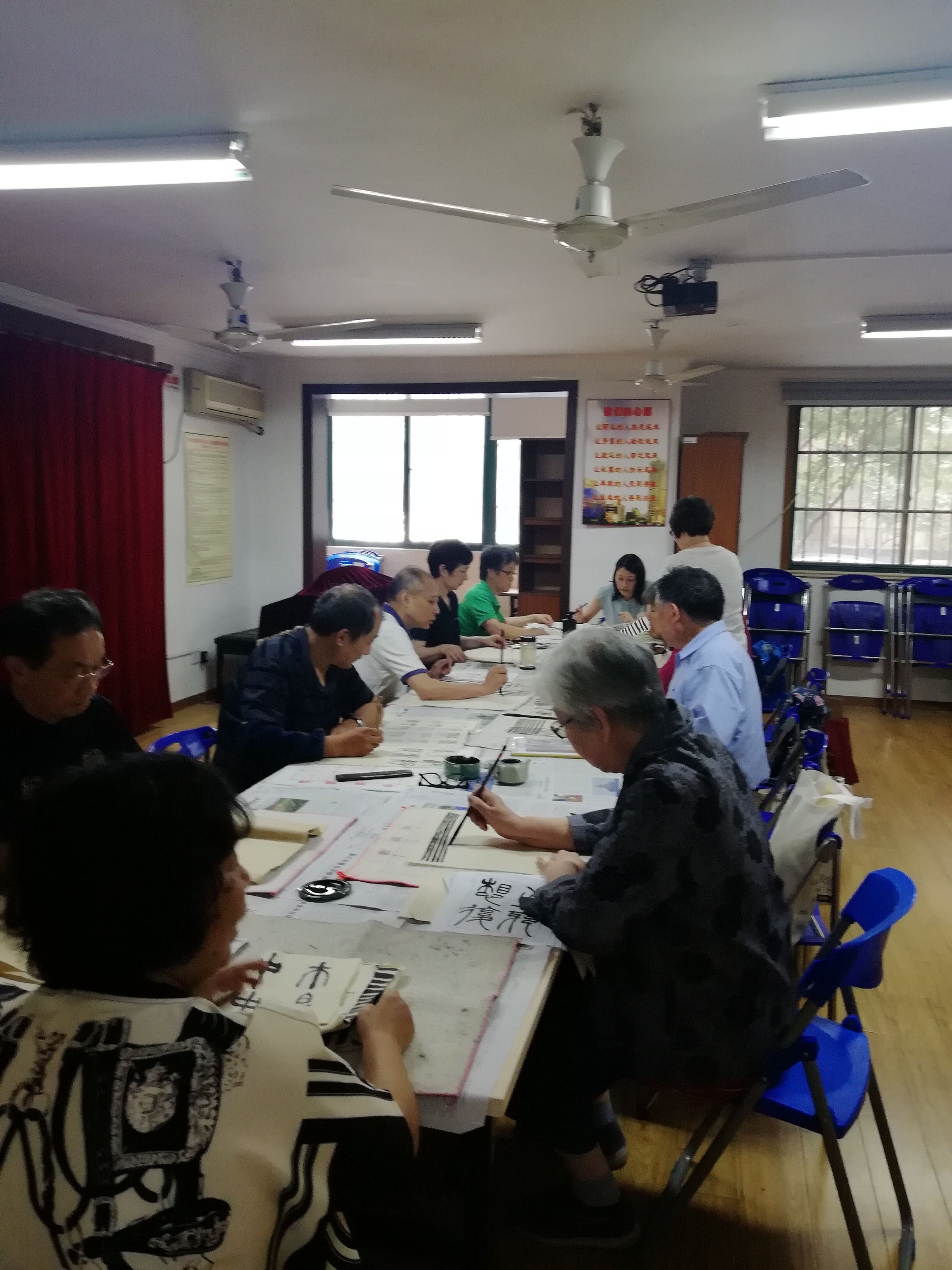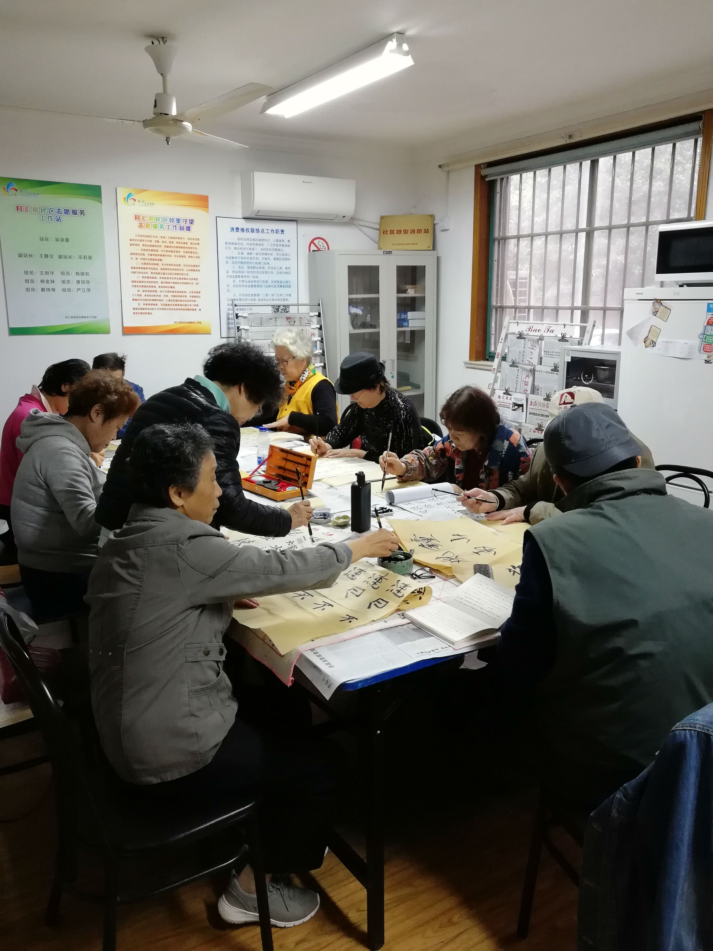 科汇社区书法组成立于2018年,由徐家汇街道科汇居委聚集了社区内热爱书法的居民,和曾春宏老师共同组成了这支有15人的书法团队。成员在退休前从事着教师、律师、医生等工作,日常主要练习学习各类书法字体。书法是国粹是对中华优秀文化的传承,对社区居民来说又能修身养性。