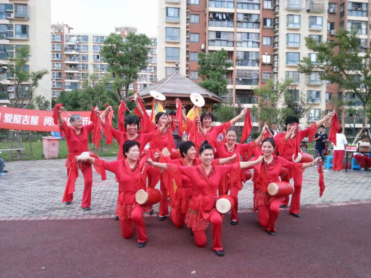 腰鼓是一项具有文化内涵,又能锻炼身体的有益活动,更受村民的喜爱。北桥村腰鼓队成立于2006年,由乔明芳带头,组织失地村民40名积极参加。通过邀请腰鼓专业老师定期指导,全体腰鼓队成员认真学习,反复练习,逐步掌握了打腰鼓的姿态、手法、节拍等基本要领。在打腰鼓的过程中,村民丰富了自身的业余生活,促进了彼此之间的交流,锻炼了身体,展现了中老年人良好的精神风貌,也带动了村的社区文化活动。在这10年中,村领导也大力支持下,北桥村腰鼓队多次参加区、镇各类活动,进行腰鼓展示。