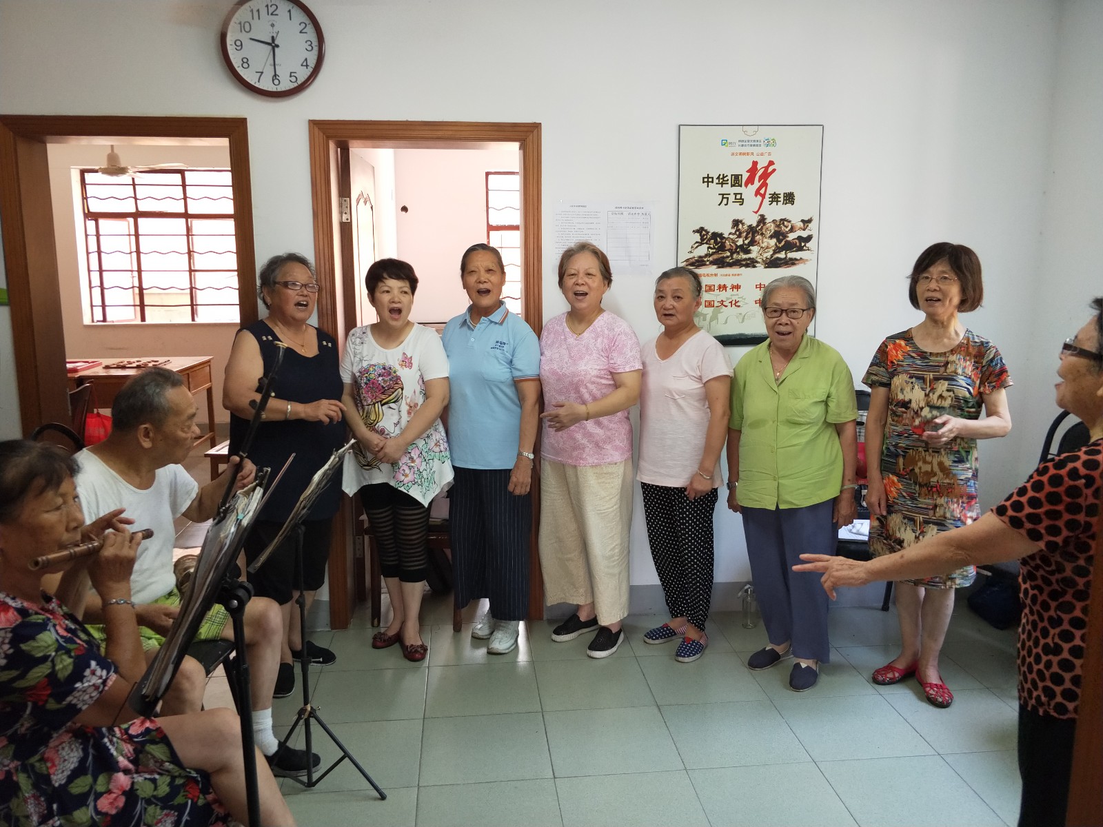 宝钢六村合唱队成立于2013年3月,目前共有队员29名,队员都是小区戏曲爱好者,队员吹拉弹唱各有所长.