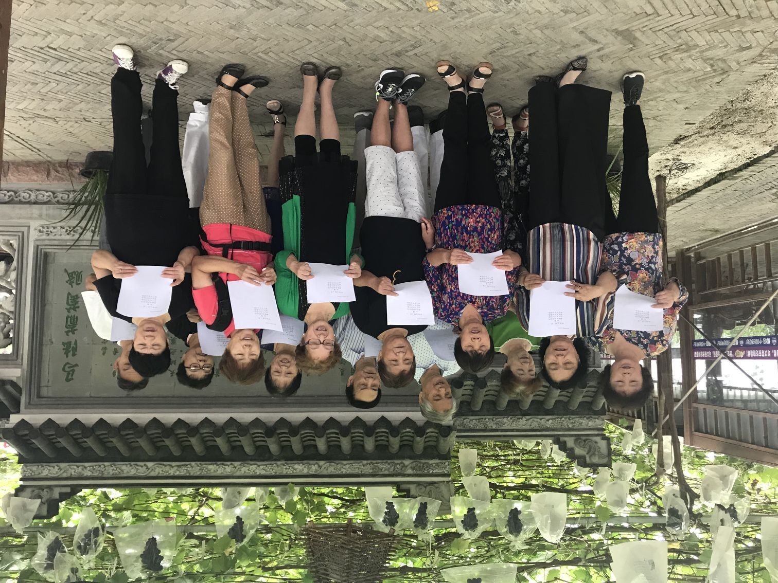 (四)学习:1. 语言关:我们采取了边唱边学的办法。就是唱哪个国家的歌就学它的语言。例如:2016年在唱“欢乐颂”之前,我们就光学德语。由我们合唱团内的德语老师陆海燕(上海交大外语系教授)教大家德语语言。他给每人发了4张德语语音、语法的教材。在“中心”上课,他教大家读,回家后大家可以在手机上听他的录音跟着读,这样艰苦地学了二个多月,总算掌握了德语的读音,然后再学“欢乐颂”歌词。