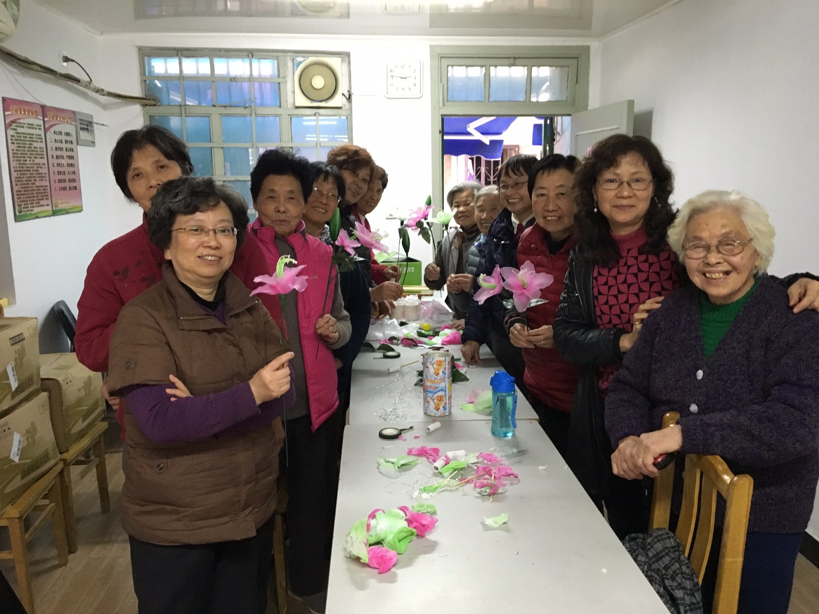 我们居委的编花队是2015年成立的在谢阿姨的组织下,居民都积极参加了这个活动主要成员有十人,其他居民也参与的。每月9号开展一次。每次周阿姨来都准备好多东西,教居民编制花朵。居民每次来都很开心不仅丰富了居民的生活,还能把编织的花朵带回家布置家。每次都会有新鲜的东西学习,在谢阿姨的教导下,许多阿姨都会了这个手艺都会教自己的朋友,也变成了一种爱好。其它的居委会人员也会来我们居委会活动室来学习。使我们这个居委活动室变得很热闹。人气也旺了,其知名度也提高了不少。这个编花的活动一直开展到现在业余的居民也越来越多了,希望会有越来越多的居民参与。