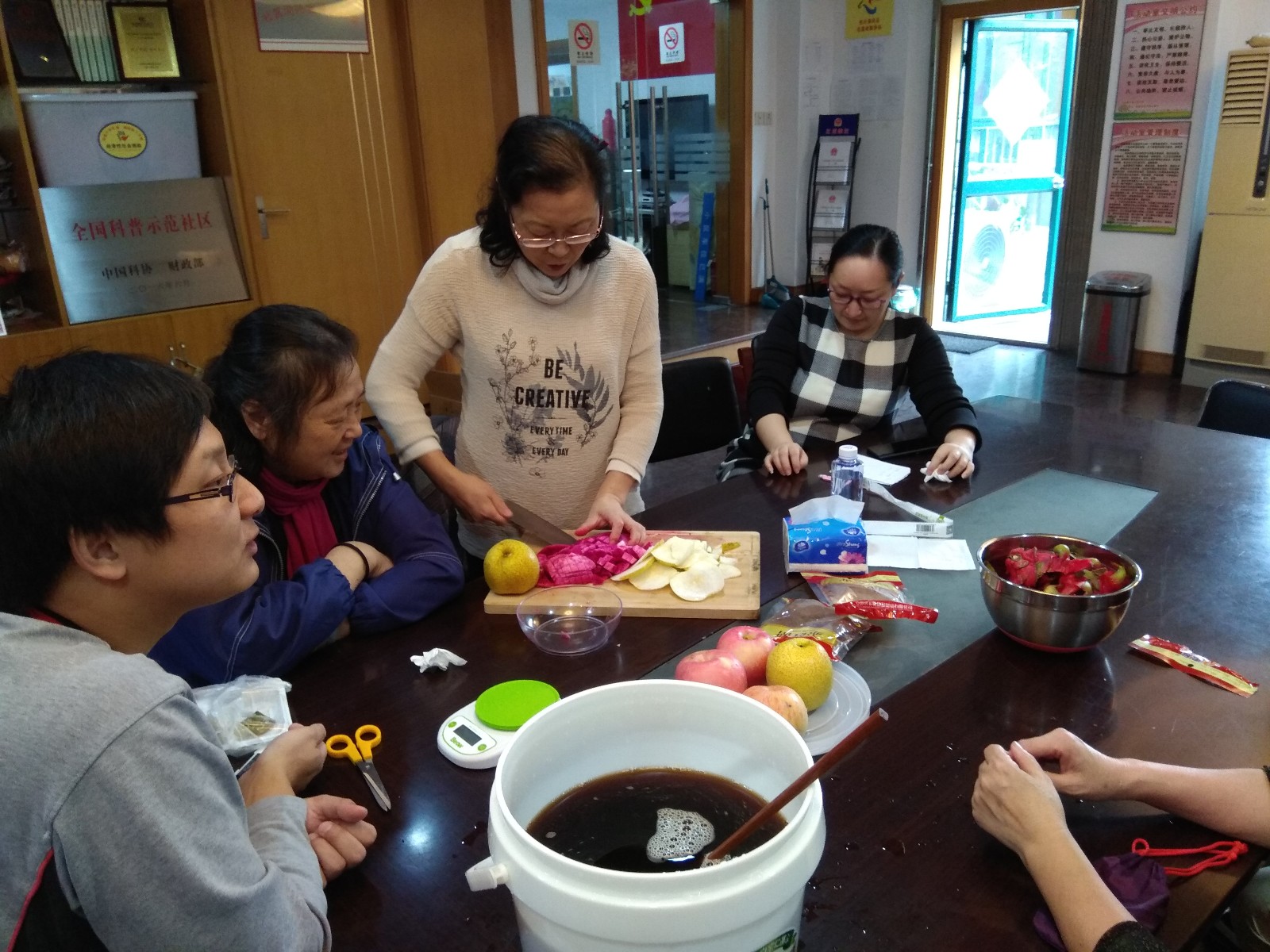 虹叶绿色生活圈相对是一支比较新的团队,由社区中爱种菜,喜欢研究环保健康饮食的社区居民们自发组成,在平时,他们一月一聚,分享阳台种菜经验、环保酵素制作方法等。