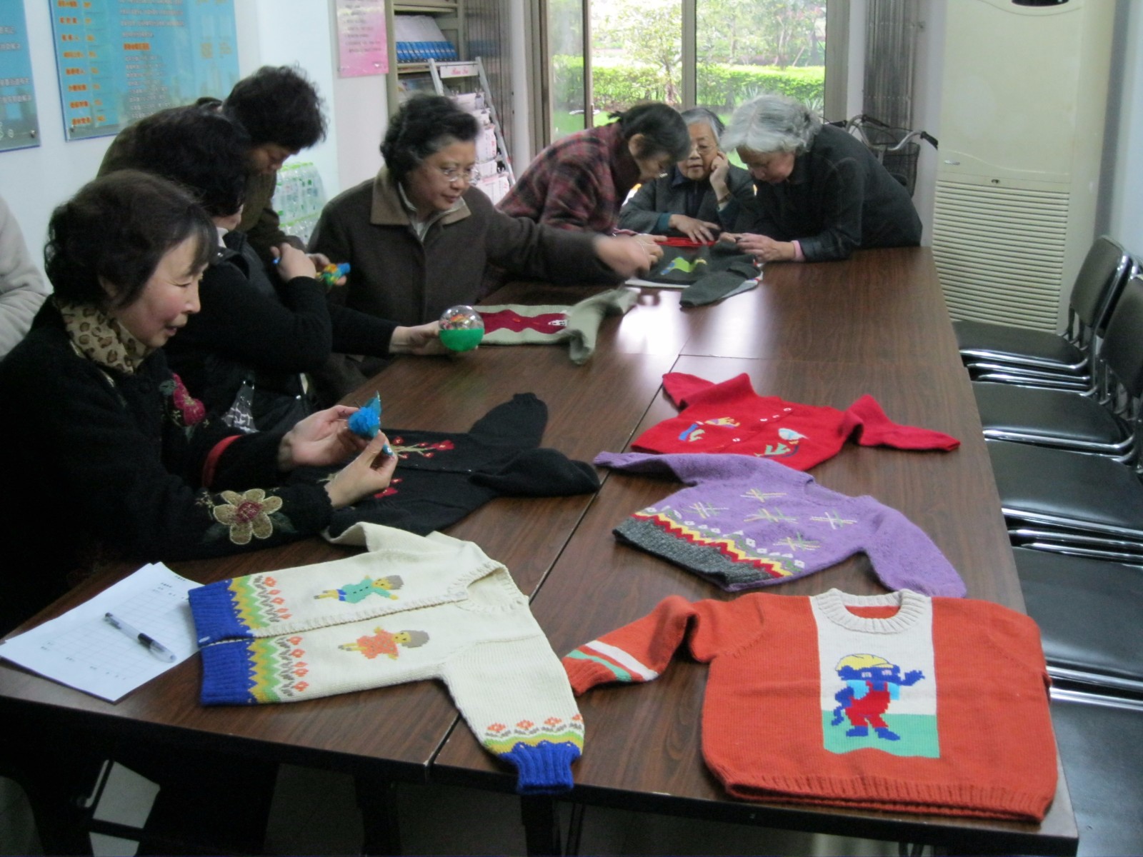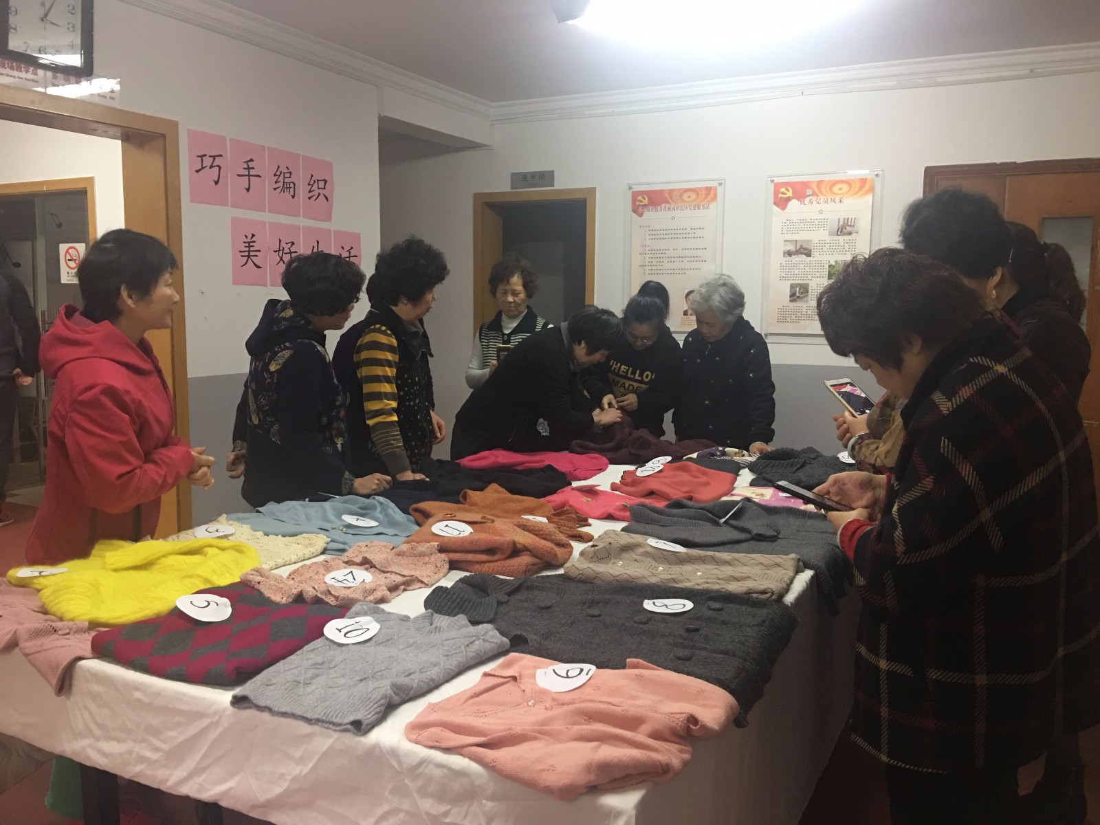 每年春节后是编织组最忙的时候,她们冒着酷暑编织青少年及婴儿、老年人喜爱的衣物及帽子、围巾,每件衣物都色彩斑斓,花样丰富,在寒冷的冬季来临之际,为小区困难的孤老和单亲家庭中困难的孩子们上门捐赠,居民们非常感动,感谢编织组成员们一针一线编织的衣物,同时,也感谢政府和居委会对她们的关心和关爱。
