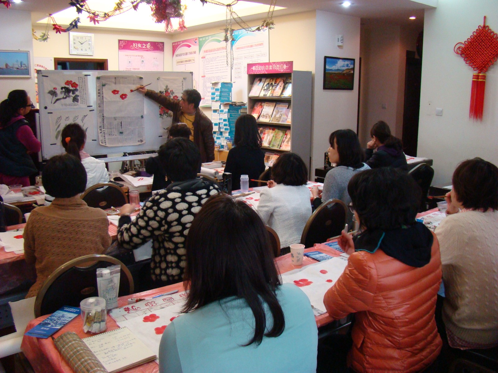 社团现有成员15人,是一个爱好工笔画的学员在一起学习的地方,因为大家喜欢工笔画,所以他们相聚在一起,他们相互学习、相互帮助、在一个愉快的心情下学习知识。 通过参加社团的活动,使学员的美术特长得到更好地发展,关注和尊重了学员发展的内在需要,使学员能在自主、自信、自立中不断体验生命快乐、实现生命价值的增长、享受生命之美。工笔画是中国书画的原生态或原发形态。工笔画入门中这种以线勾勒、用色渲染的基本样式乃是中国一切绘画的基本描绘方法。