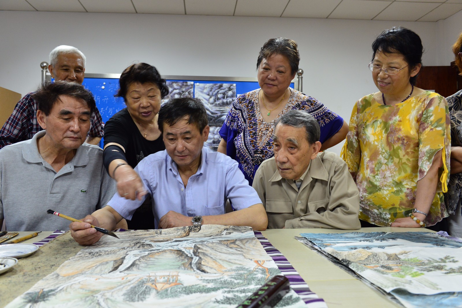 区域联动,老有所乐。热情活泼、心怀祖国是沙龙老同志们共同的特点。他们独特的人身阅历,让他们对这块热土有着格外深刻执着。他们最常绘画的是祖国的大好河山,旭日东升的绚烂、山高水长的豪迈……他们的热诚同样表现在积极参加各级举办的各类书画艺术作品展,因为他们了解,只有被更多人认识和了解到的作品,才有提高的空间和创作的意义,艺术,不是孤芳自赏,而是与众同乐的,零零总总,无论大小赛事和展示,都能看到我们沙龙的身影,和那一幅幅山清水秀、笔法细腻的优秀作品。