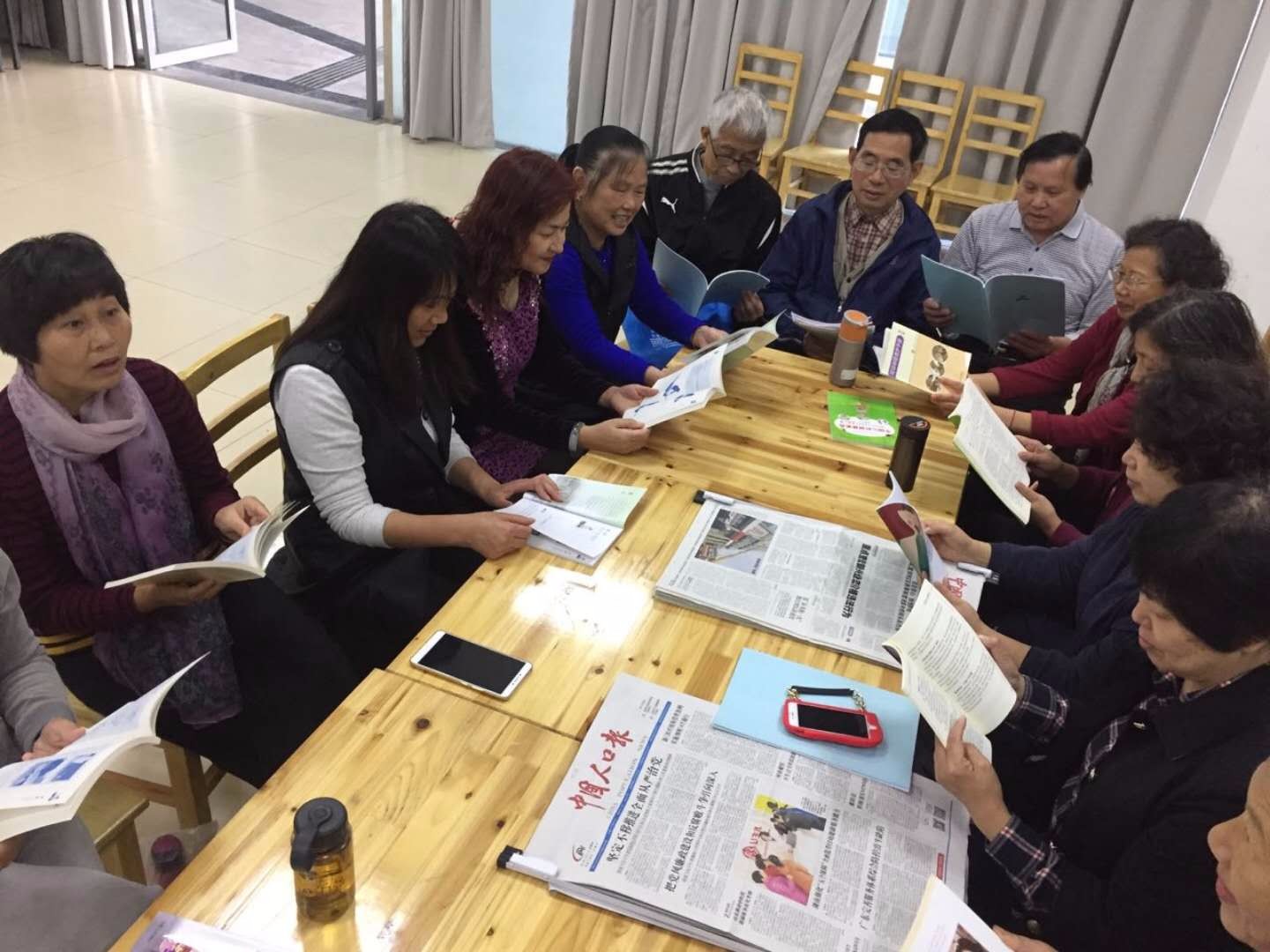 为了丰富老年人的晚年生活,让社区退休老年人有学习、活动、交流的平台。在镇老龄办、社区学校领导的关心下,经纬城市绿洲第三居委会和社区居民的共同努力下,《社区读报学习团队》于2012年创建。