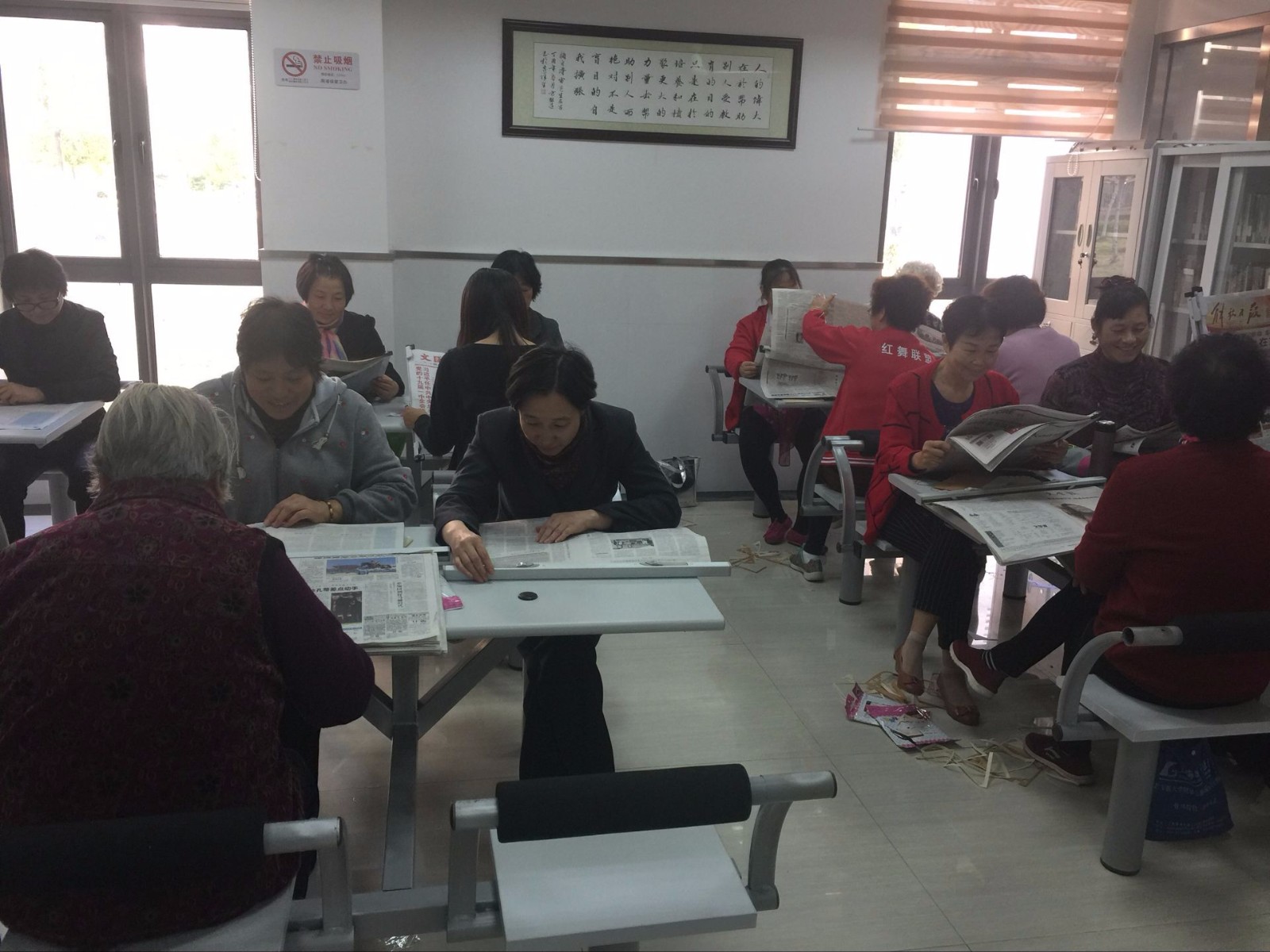 社区居民学习骨干、热心于社区老龄事业发展、爱学习、能启迪智慧、人品好、身体健康的老年学习志愿者,经居委选拔,在自愿的基础上,组成了一支45人的读报学习团队。每周1次读报学习活动,设负责人一名,负责日常管理。团队每一学期(上半年3月-6月;下半年9月-12月)制订规划和活动计划,每一学期团队工作进行总结,对工作中存在的问题提出讨论,提出建议,对下一步的工作方向共同探讨,做出部署。团队组织各项活动的开展,做好工作记录。队员加强自身学习,团结协助,充分调动各方面积极因素,确保团队健康持续发展,蒸蒸日上。