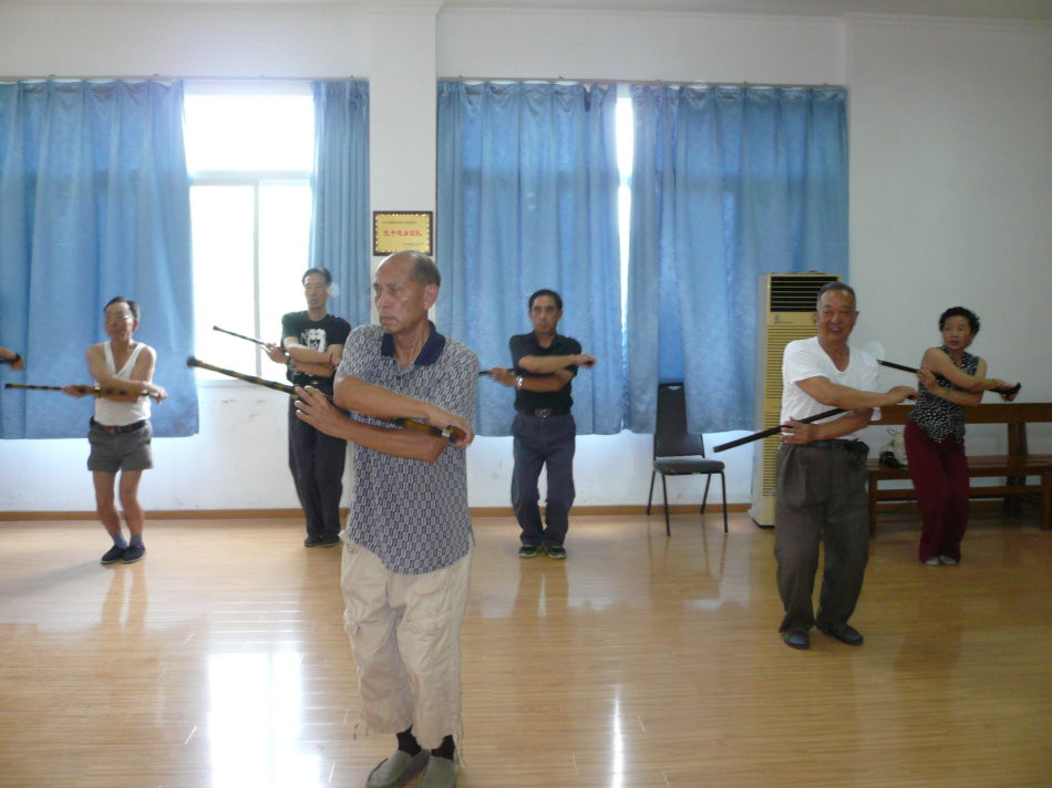3.定点定时活动,每天晨练与集训相结合,拳操相结合,从而丰富了活动内容和项目,达到健身和愉悦身心的目的。