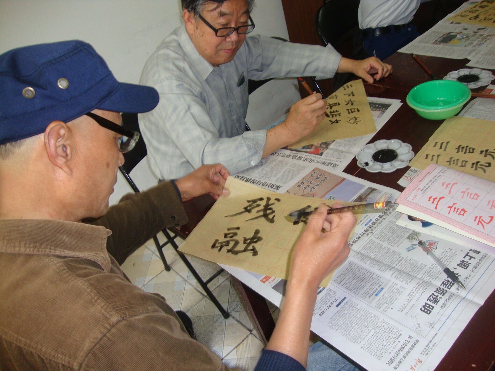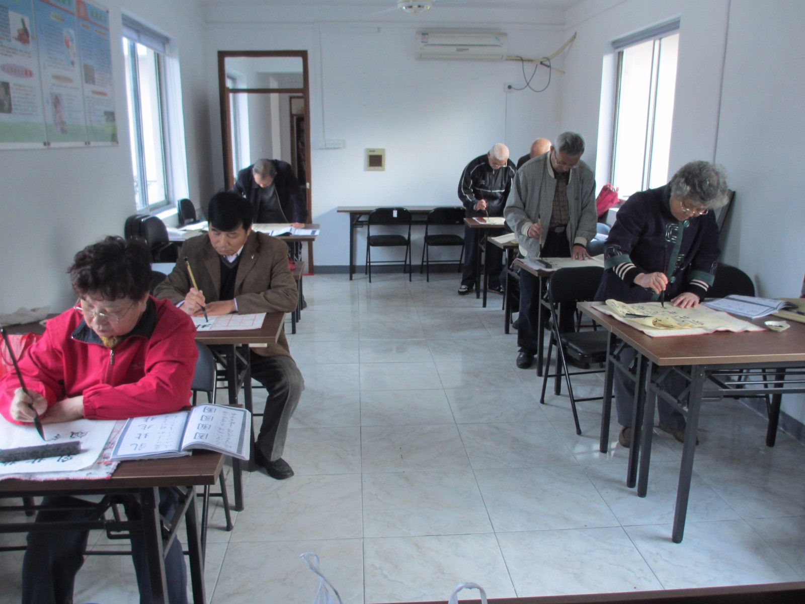 为丰富社区居民业余文化生活,南门书法班成立于2005年,由社区志愿者颜宝林老师义务执教。几年来,在中山街道和居委会以及共建单位等单位的全力支持下,书法班克服了资金缺乏、经验不足等一系列困难,坚持至今,每周五下午,书法班学员都会聚在社区活动室,在颜老师的悉心指导下,练习楷书、行书、草书等书法技巧。
