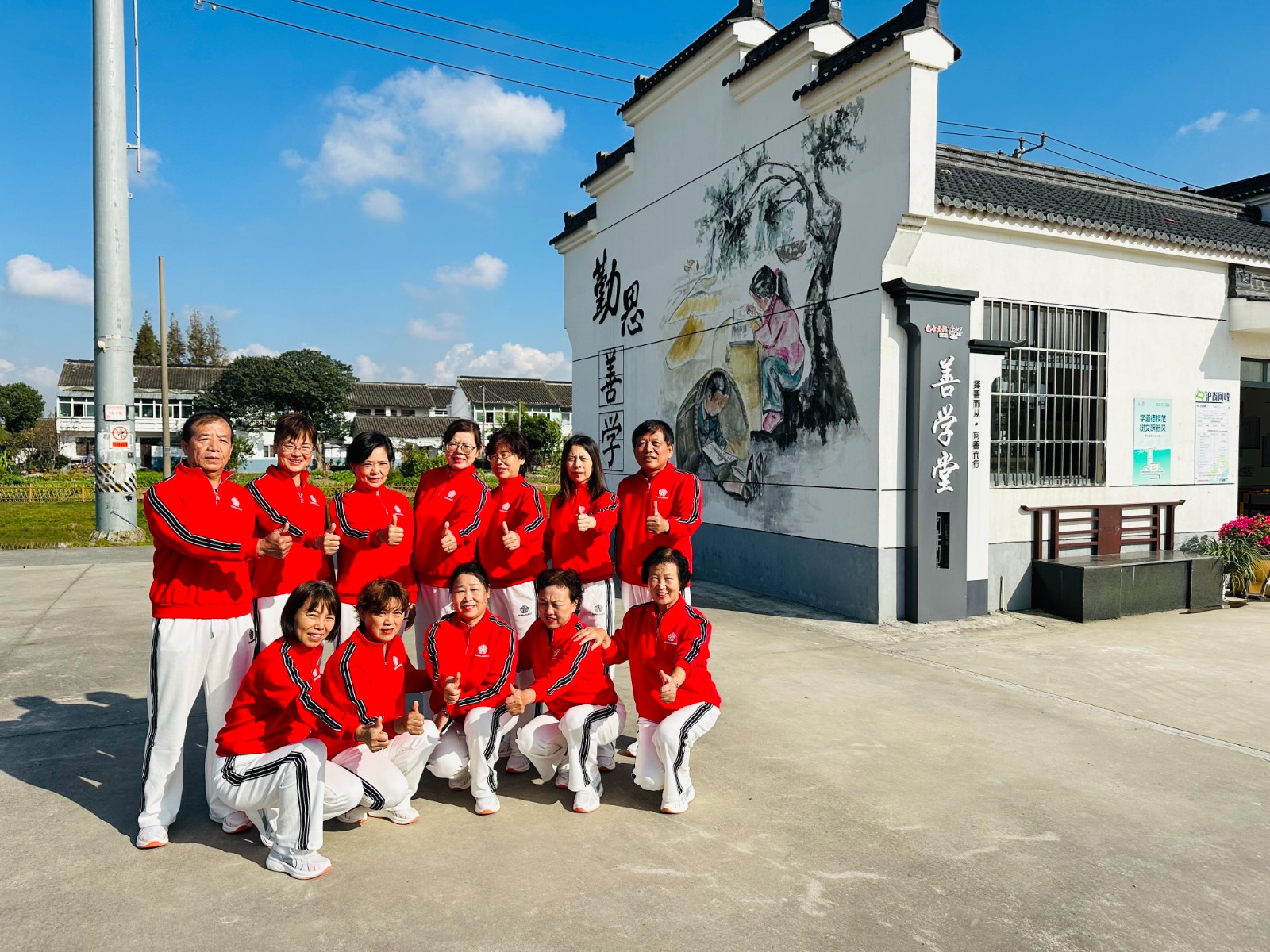 太极拳是蕴含着深厚中华文化底蕴的传统武术,不仅是强身健体、修身养性的瑰宝,更是中华民族非物质文化遗产中的璀璨明珠。大裕村嘉新社区的“太极韵动队”,是在太极拳爱好者陈建明的带领下,自发组建的学习团队,共有8名学员,均为退休老年人。“太极韵动队”自成立以来,坚持“老有所为,老有所学,老有所乐”的理念,团队负责人陈师傅每周两次组织学员们在社区公共运动场或是活动室开展太极拳交流学习活动。
