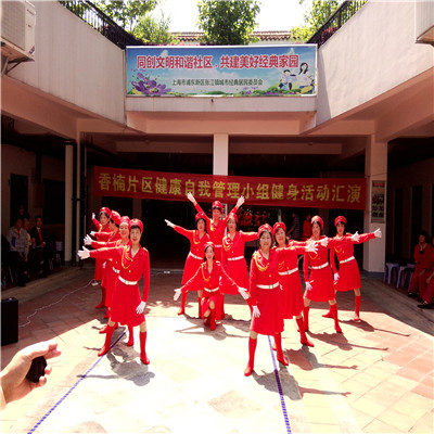香楠路“最美夕阳红”老年健身队于1995年成立至今,团队成员20多人,平均年龄60岁,其中还有男性队员1名。会太极拳、木兰扇、球操、拍打操、广场舞蹈等各类项目。参加各类比赛和活动展示和社区文艺演出几百场,获得各种奖项不计其数。