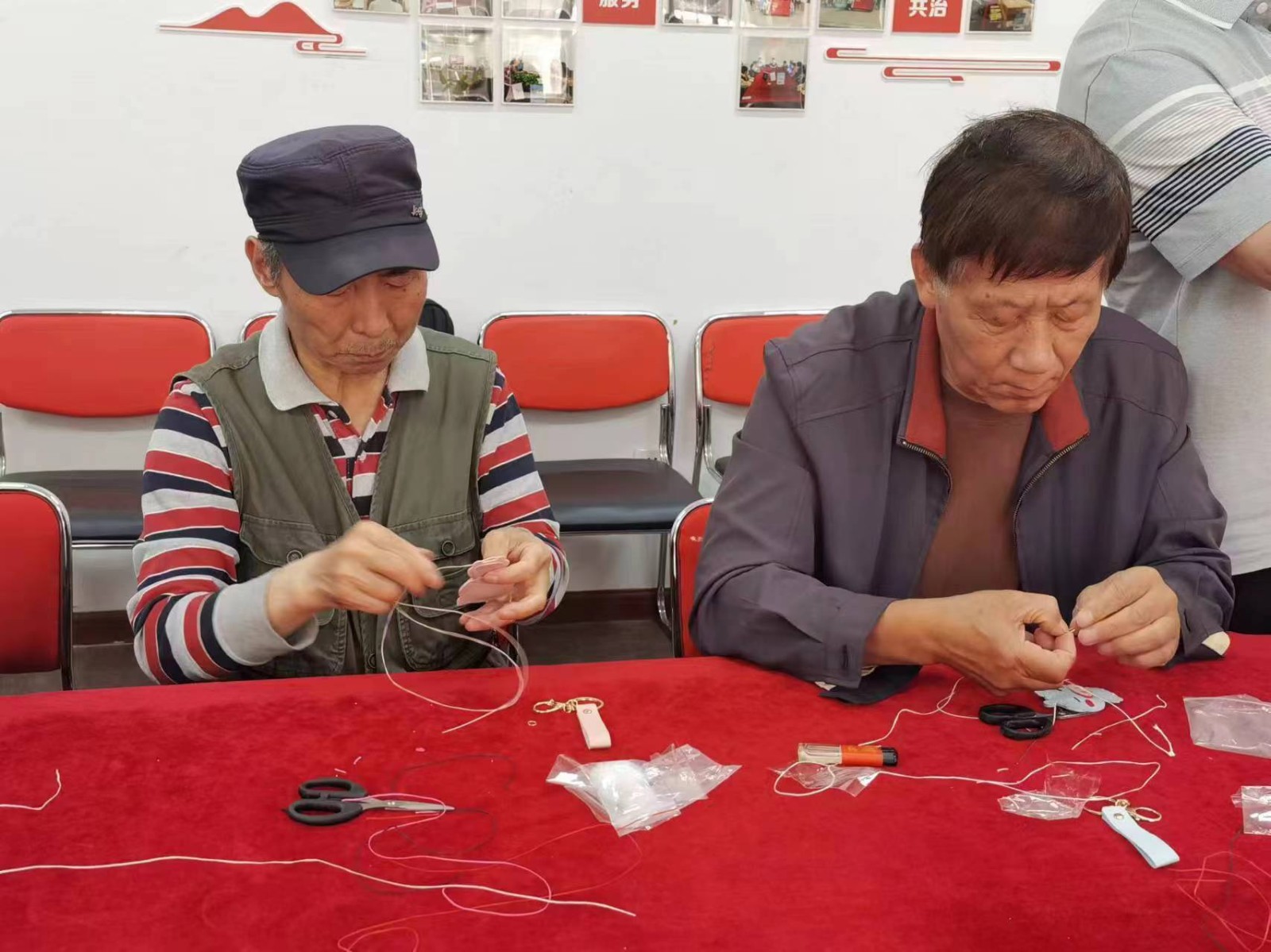 盘扣手工沙龙在桑园村展开在宋秀丽老师的指导下,学员们学习了如何用彩绳编织成精美的盘扣,开展非遗盘扣能让村里的手工爱好者学到新的技能,探索其中的乐趣与奥妙。盘扣制作技艺是一种具有技术和艺术双重性质技艺,经历设计、配色、画稿、盘条制作、造型设计等及个步骤,最终形成具有个性化和艺术性的盘扣。传承和发扬这一技艺需要让学习者能够从中获得成就感,并树立初心,将盘扣的技艺应用于文创和其他领域,满足大众的需求。如果让这样的一个具有及时和艺术双重性质的传统艺技就这样失传了我想很多年以后会很遗憾,我们觉得应该去做这样一件事。做这个盘扣的时候,老师会根据理解设计,比如二十四节气的理解。可以设计腊梅、春、夏、秋、冬结合起来。每一次穿梭缠绕均产生奇妙的特效,拖上长长的流苏,传达出中国传统的内敛格调。盘扣的制作过程中需要经过精心设计和精细制作,每一步骤都要倾入注高度的耐心和专注,它不仅是实用的装饰品更是一种中华名族传承了千年文化的符号。在未来,我们将努力推广此项目的成果月经验力争将盘扣学习让更多的人参与进来。