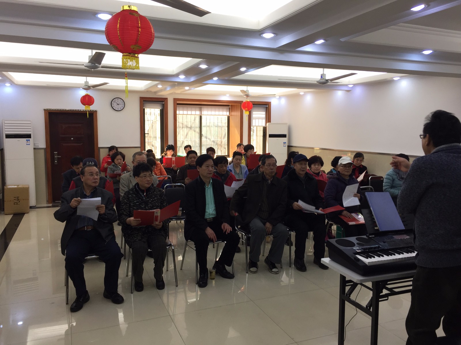 安排比较专业的老师负责安排教学,以排练多声部大合唱为主,同时也组织乐理知识学习。根据一部分团队成员的优秀条件,适当排练一些独唱、组合唱等形式的节目,以备参加节目演出。