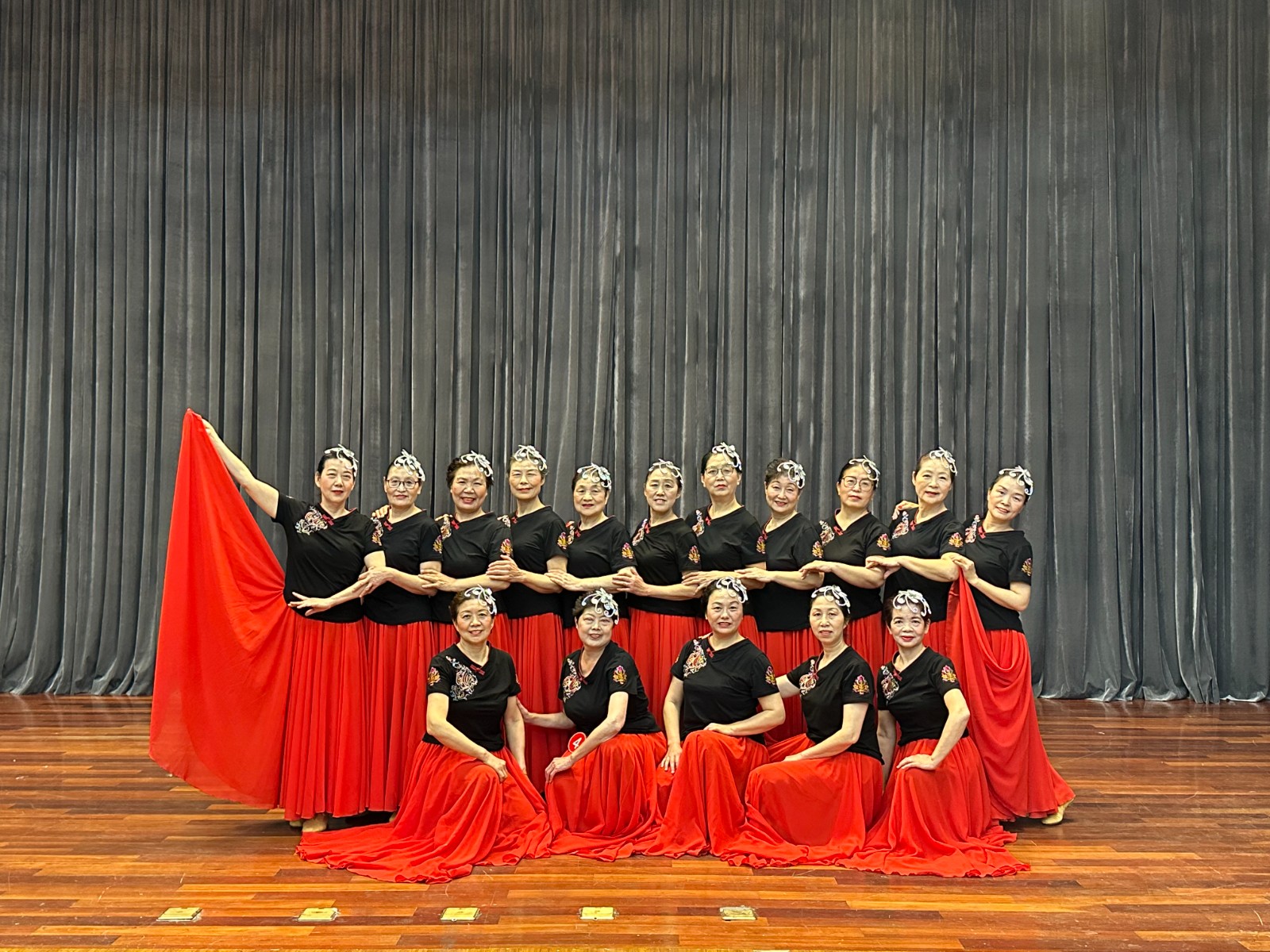 海昌舞蹈队是以老年人为主体的社区学习团队。初始团队成员均来自辖区内的退休志愿者们,从一开始的小范围团队逐步扩大到现在的20人团队。舞蹈队成立之初可谓是困难重重,大家都没有什么舞蹈基础,也没有相对合适的排练场地,但大家群策群力在困难中寻找条件,大家开始紧锣密鼓的排练舞蹈,尽管大家毫无任何舞蹈基础,甚至有些最基本的动作都要不停的反复练习,但是队员们都很刻苦,没有人练得不耐烦,也没有人中途退场。团队的成立得到了海昌居委会的大力支持。团队每周活动一次,关请假制度,大家严格守纪。平时学习和训练一些广场舞的基本动作和技能。在这个基础上,也编排一些节目,在本年度我们海昌舞蹈队在居委的工作安排下,除了进行了正常的舞蹈队常规活动外,还配合进行了“七一”党庆活动的准备工作。我们选择排练了江南特色的《桃花雨》节目,队员们虽然舞蹈基础参差不齐,但是学习舞蹈的积极性都很高,不管是活动内外,有时间就自己练习,把教学老师的动作拍成视频,在家反复学和练,没有人会甘心落后,此情此景非常感人。舞蹈排练很成功,“七一”党庆汇报时我们的节目深受海昌小区居民和街道、居委领导的好评。