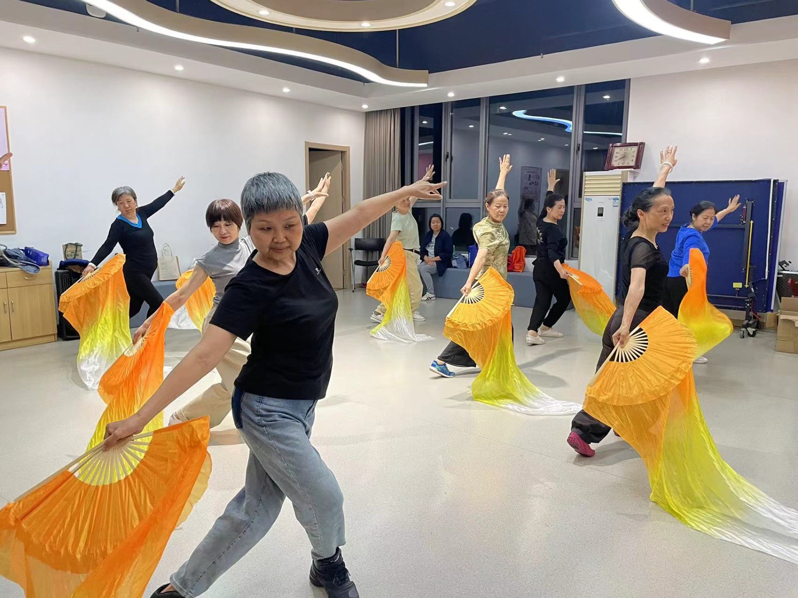 共和五村是一个充满活力的老小区,自建20年以来,陆续突显各类人才,其中最为活跃的是老年舞蹈队。它们组成于2015年3月8号由孙鸿芳女士倡议组织, 刘闵芳教舞自发组织的一支快乐队伍。她们均退休人员,组织每周二.五上午9.00-10.00在活动中心进行排练。本居民区有大小活动时,都有她们娇美的身影,深受广大居民的喜爱与好评,就连附近的小区也常邀请她们参加表演。这支有着爱好与责任的团队,从开始至今没有出现过不和谐,大家团结互助,笑口常开。
