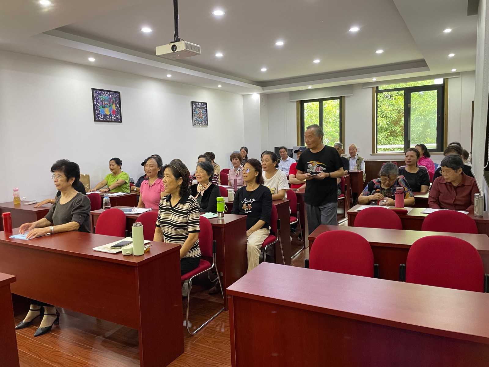 合唱队虽则成立时间不长,但是队员们的学习积极性很高,活动丰富多彩。每两周一次聘请专业老师教学乐理知识、演唱技巧等;每周学员分组练习唱歌等,保证每个学员有三个晚上的集中学习时间。合唱队学习的内容非常广泛,有时事政治、乐理知识、演唱技巧,也时常排练节目,参加各种演出。每年定期组织考察活动,帮助队员开阔眼界,增长知识。活动队就像一个大家庭,每天晚上其乐融融。有的对着电脑练歌,有的在老师指导下练声、练歌。