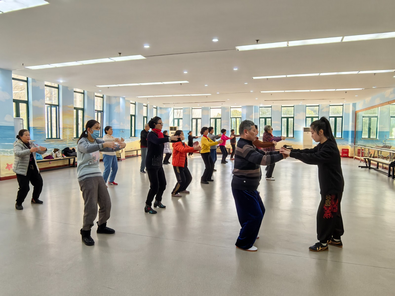 队伍大部分学员为零基础,由老师手把手进行线下教学,学习时间固定为每周三上午9点。各位学员严格执行学习制度,上课前打卡签到;如遇突发情况,提前向学习点老师请假。截至目前,出勤率为100%。太极拳队的活动形式多样,除了日常定期的太极拳练习、培训和训练外,还积极参与社区太极拳的展示与表演等。
