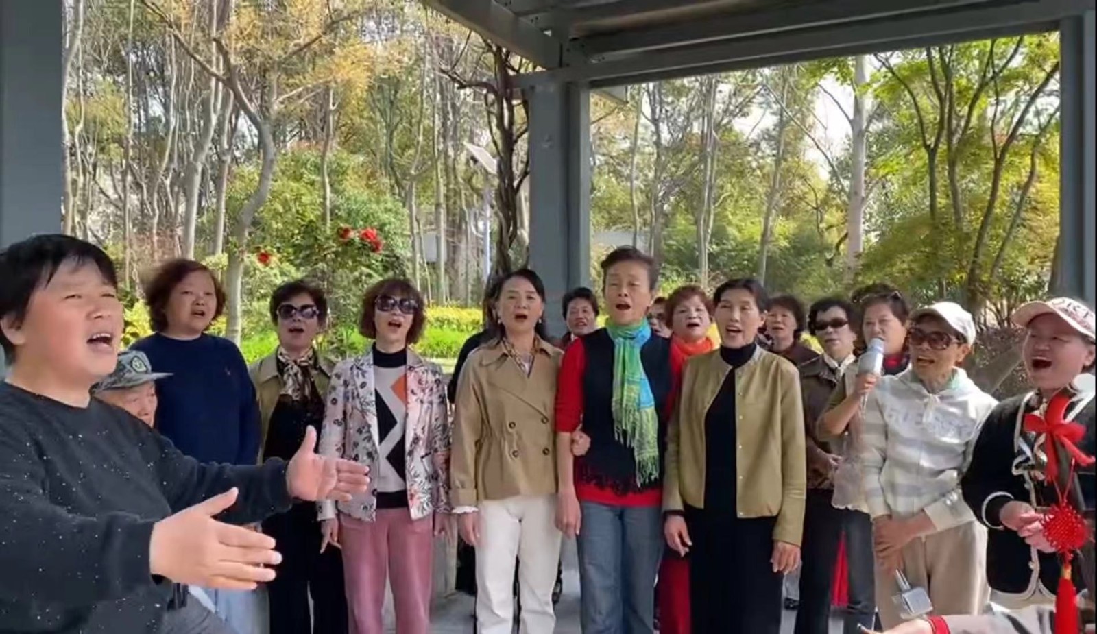 锦博园好声音合唱队起初是一支因为爱好在锦博园聚集起来的合唱队,后来逐渐壮大发展成为一支文艺团队,以退休的老年人组成,有退休的大学老师,有退休的机关干部,有退休党员。他们热爱文艺,唱红歌、跳舞、沪剧、越剧、二胡、琵琶,小乐队演奏,都是他们的拿手好戏。老有所爱,老有所乐,他们常常组织去敬老院为大哥哥大姐姐们进行公益表演,为社会贡献力量。