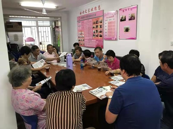 为丰富辖区老年群众的精神文化生活,增进社区老年人娱乐活动的交流,营造健康向上的社区文化氛围,闸殷路81弄居委由志愿者曹茂庆带领辖区内对文化交流感兴趣的志愿者一同组织了读报小组,鼓励社区老年人积极培养科学、健康、高雅的兴趣爱好,俗话说“书中自有黄金屋,书中自有颜如玉”通过不断的学习,提高自身文化修养和眼界! 随着小组活动的开展,使社区居民志愿者的业余生活更加丰富多彩,也吸引了更多的居民踊跃参加!
