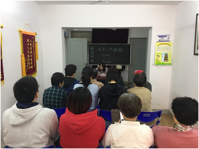 为深入贯彻“以人民健康为中心”的发展理念,实现人民群众身体健康、心理健康、道德健康、社会关系健康的“四大健康”目标,绿十二居委于2018年成立了绿十二健康自我管理队,目前有16名队员,每月有社区卫生服务中心的医生进行健康讲座。