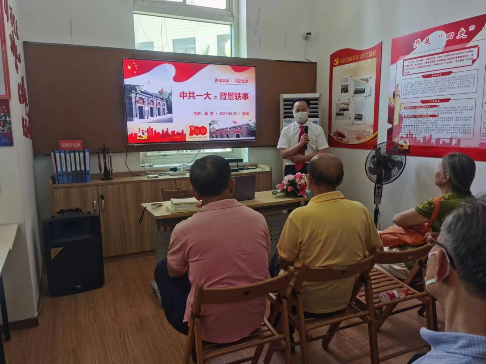 文史班集结了喜爱中国历史和古代、近代文学的居民,在业余时间一同探究,分享经验。文史班邀请退休党员季祥茂作为讲师,为大家分享党史,红色经典;让我们感悟革命先辈坚定的信仰、丰富的情感、伟大的人生,助力我们养成浩然正气的人生观。