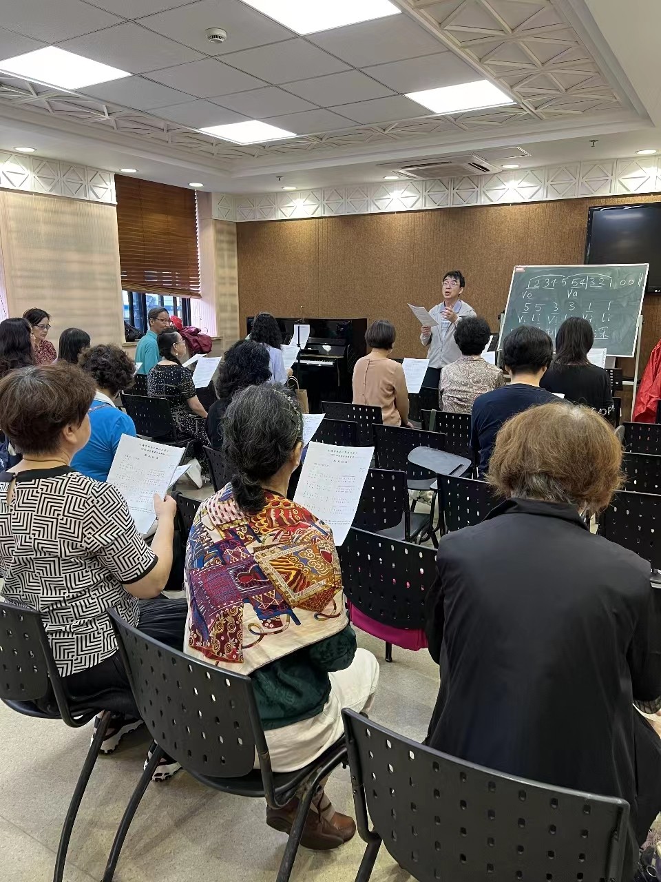 以前团员们不会合K歌中的伴奏,线下只管自己唱,因为钢琴伴奏老师会跟着他的,所以经常会抢拍或脱拍,现在要跟着正规伴奏唱,就要仔细地听,熟悉伴奏,经过长期的训练,大家的耳朵好了,会听伴奏,节奏稳了。团员们用音乐相伴度过,互相学习、鼓舞,收获音乐艺术的快乐和力量。 我们对如何科学发声、咬字行腔、如何提高演唱的表现力、“用耳朵重唱”、腹式呼吸有助健康,有了新的认识与提高。