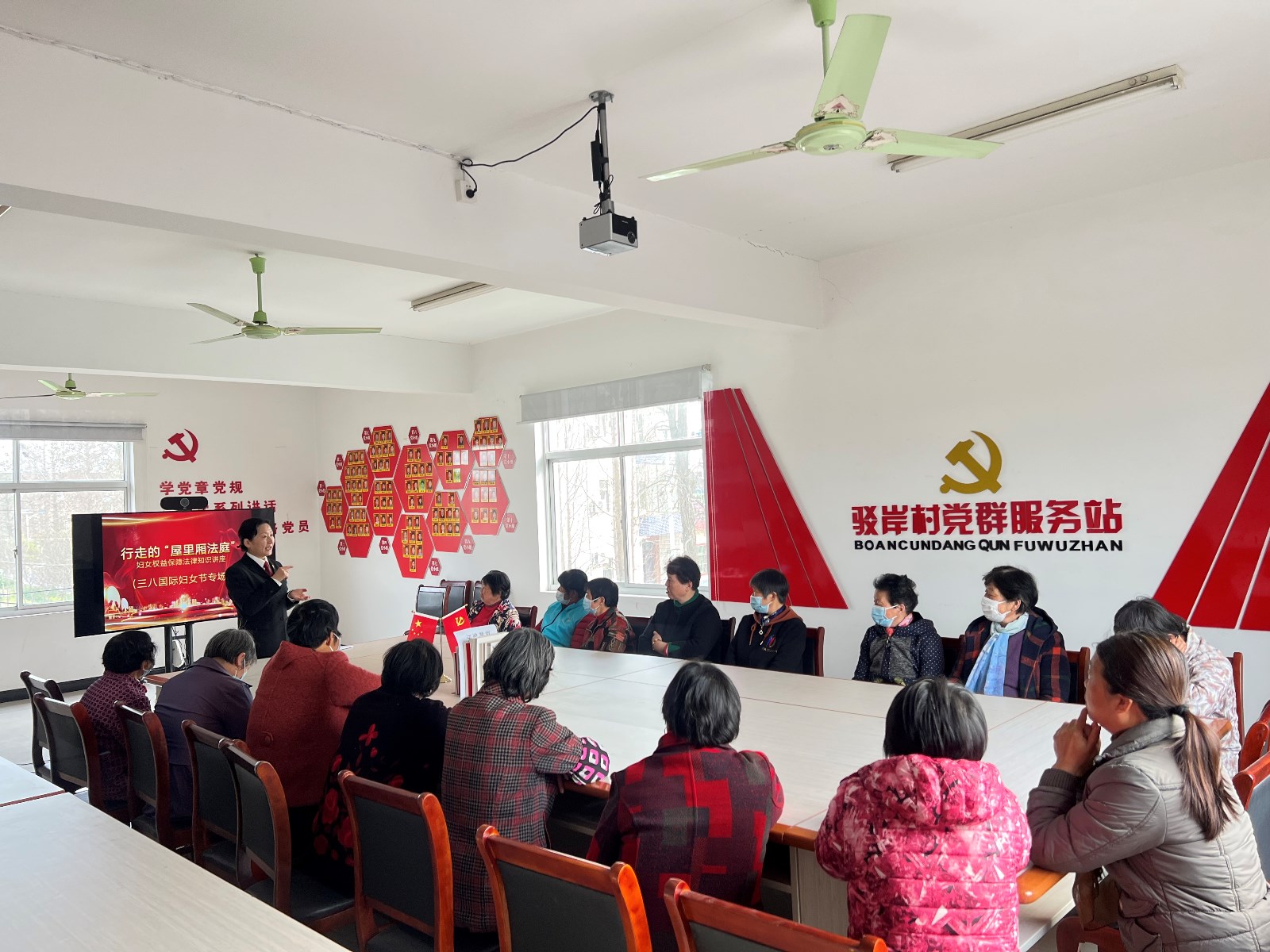 在今年“三八”妇女节当天,驳岸村特邀金山法院干律师来村里开展“行走的屋里厢法庭”妇女权益保障法律知识讲座。活动中,干律师围绕村民日常遇到的法律问题,结合颁布的《民法总则》,用现实生活中真实法律案例,以案释法,以法论事,深入浅出地给大家上了一堂精彩的法治讲座,告诉老宝贝们在日常生活中要办事依法、遇事找法、解决问题用法、化解矛盾靠法。