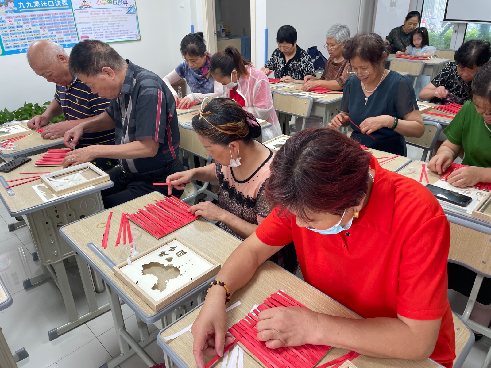 2022年“我们”耆乐会经过与小区居民的多次沟通,后续在小区内成立了一支15人的志愿者队伍,每个志愿者都有自己的特色,有剪纸、编织、书法、太极拳等兴趣活动,各类活动中完成的所有物品,挑选最佳作品进行展示并在年底进行公益拍卖会,拍卖所得全部捐出。对辖区孤老和困难家庭开展“六送”服务,送慰藉(每月一到两次的电话问候,一次看望、唠家常、交流互动等,更进一步了解老年人的需求),送健康(安排志愿者上门测血压、血糖,了解老年人身体机能,开展健康讲座,让老年人知道如何正确使用药物等),送关怀(提供保洁、维修等,现在智能手机普及,但是对于老年人使用却存在一定的问题,志愿者上门可指导他们如何正确使用智能机;秋冬季节是火灾高发期,安排志愿者对独居老人家中天然气管道和家中电器进行检查,做到防患于未然),送救助(对不能进行自理的老人进行一对一的跟踪监测等),送文化(邀请老年人参与文化活动,诗书画和手工编织等),送法律(法律大课堂及法律咨询,现在诈骗的手段越来越多,上门宣传如何反诈,防止上当受骗)。