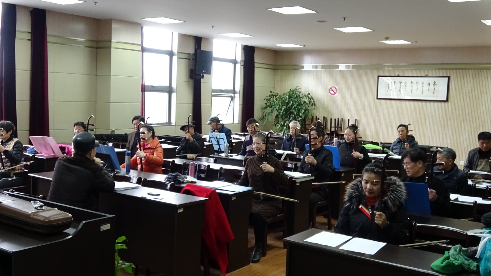 “快乐葫芦丝”学习团队成立时间不长,成员由喜欢音乐的周围老年居民组成。为满足周边社区居民学习音乐的热忱,2023年三月,根据需求,高东镇社区学校成立了一支以初学者为对象的葫芦丝练习学习团队名称为“快乐葫芦丝”。葫芦丝团队建立了学习制度和工作职责,并自筹资金购买乐器与教材。每个学员在学习过程中非常自觉,自觉遵守学习制度,有事项请假从不无故缺席。葫芦丝的指导老师陈伦美老师是一个非常有才能有爱心的老师 ,自编葫芦丝曲目指导学员手指的技巧以及相互配合的默契程度。在学习结束时的表演舞台上,虽然作为葫芦丝乐器学习的新生力量,但每个学员的自觉努力学习以及老师的精湛指导,学员们以自信的心态表演了一首又一首的曲目。