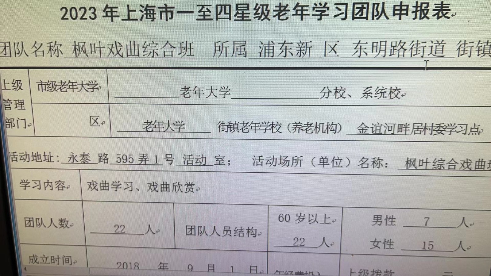 为了我们老年人的精神文化需求,也为了提高我们高质量的文化需求,在老年大学的配合和支持下,我们成立了“贤苑戏曲队”,现有队员20名,指导老师是年轻漂亮的许群老师。 我们制定了团队规章制度,学员们都严格遵守,不无故缺席,如有特殊情况都提前请假;也做到了年初有计划,年终有总结。我们的团队课程有越剧,也有沪剧,深受老年人的喜爱,大家积极向上,团结一致,使“贤苑戏曲队”这支队伍越来越好,让戏曲文化一代一代传承下去。