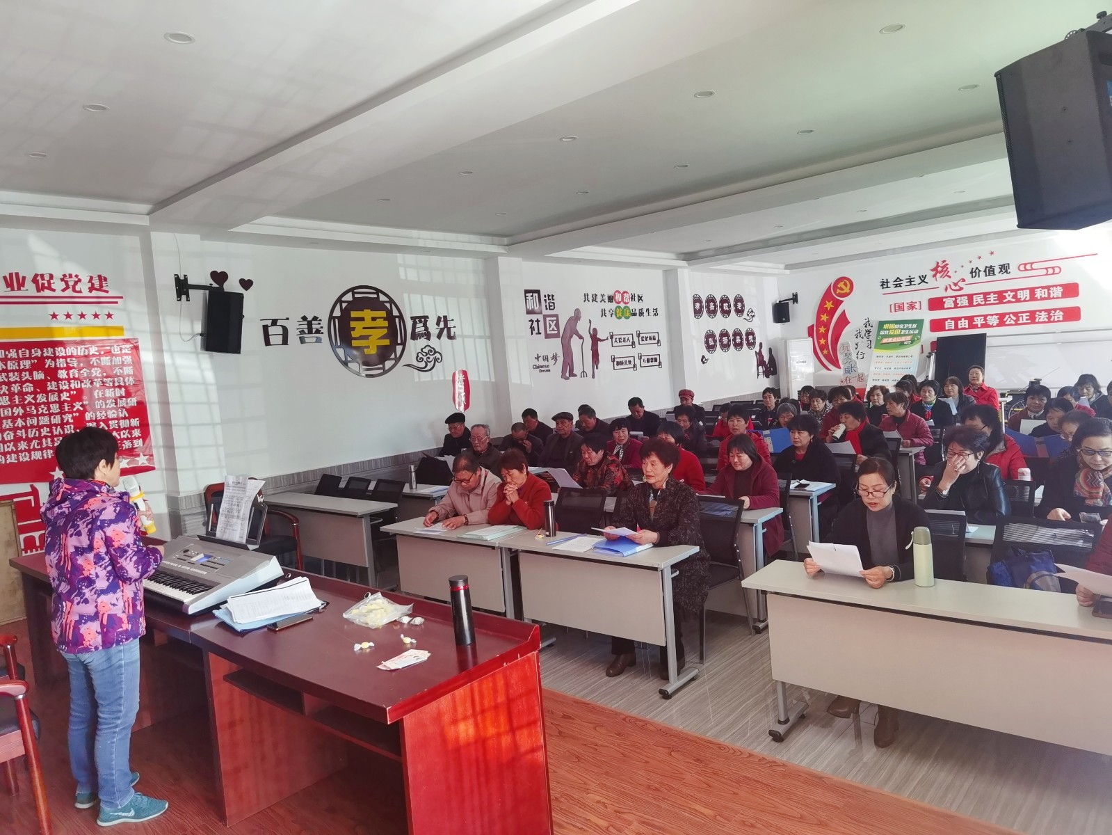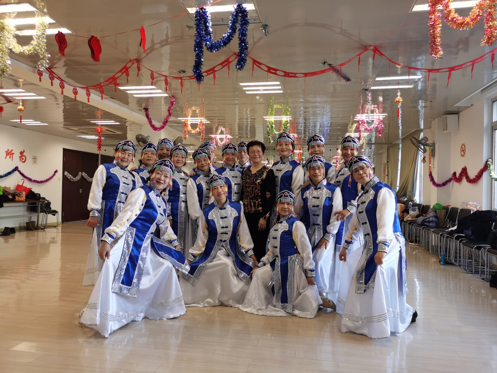 排舞班开始以比较简单的排舞学习为主,逐渐扩展到形体舞、民族舞(藏族、蒙族)、古典舞、恰恰等各类舞种,使初学者从不知如何走第一步舞步,到现在部分学员已经可以跟着视频自学舞蹈,大家都感到收获满满。我们学习的主要载体是从网上找寻比较新颖的、紧跟时代感的、舞姿和音乐比较优美的、适合班级整体水平的舞蹈。老师先下载自学,转换音乐,并将每个舞蹈的步骤包括前奏、间奏、结尾、中间段落、舞蹈顺序都写在黑板上。班长和学习积极分子课后还组织舞蹈复习团队进行复习消化上课内容。每个舞蹈结束,都要穿上自购的与舞蹈匹配的服装拍摄视频和照片进行保存留作纪念。学期结束还召开总结交流会,居委干部也会来参加。每个人都上台表演二个舞蹈,大家都尽情把自己美好的一面展示出来,也是检验学习成果的汇报演出,取得圆满效果。这些都与班长和骨干分子的密切配合分不开的,班长每次课前要在群里下发各类通知,提醒注意事项,起到了老师与学员之间的桥梁作用,老师有事请假,班长就负责组织大家复习,还要进行各类事项的协调,与一些学员中的志愿者进行场所的踏勘布置、各类物资的采购等等,所以排舞班取得的成果与她们密不可分。