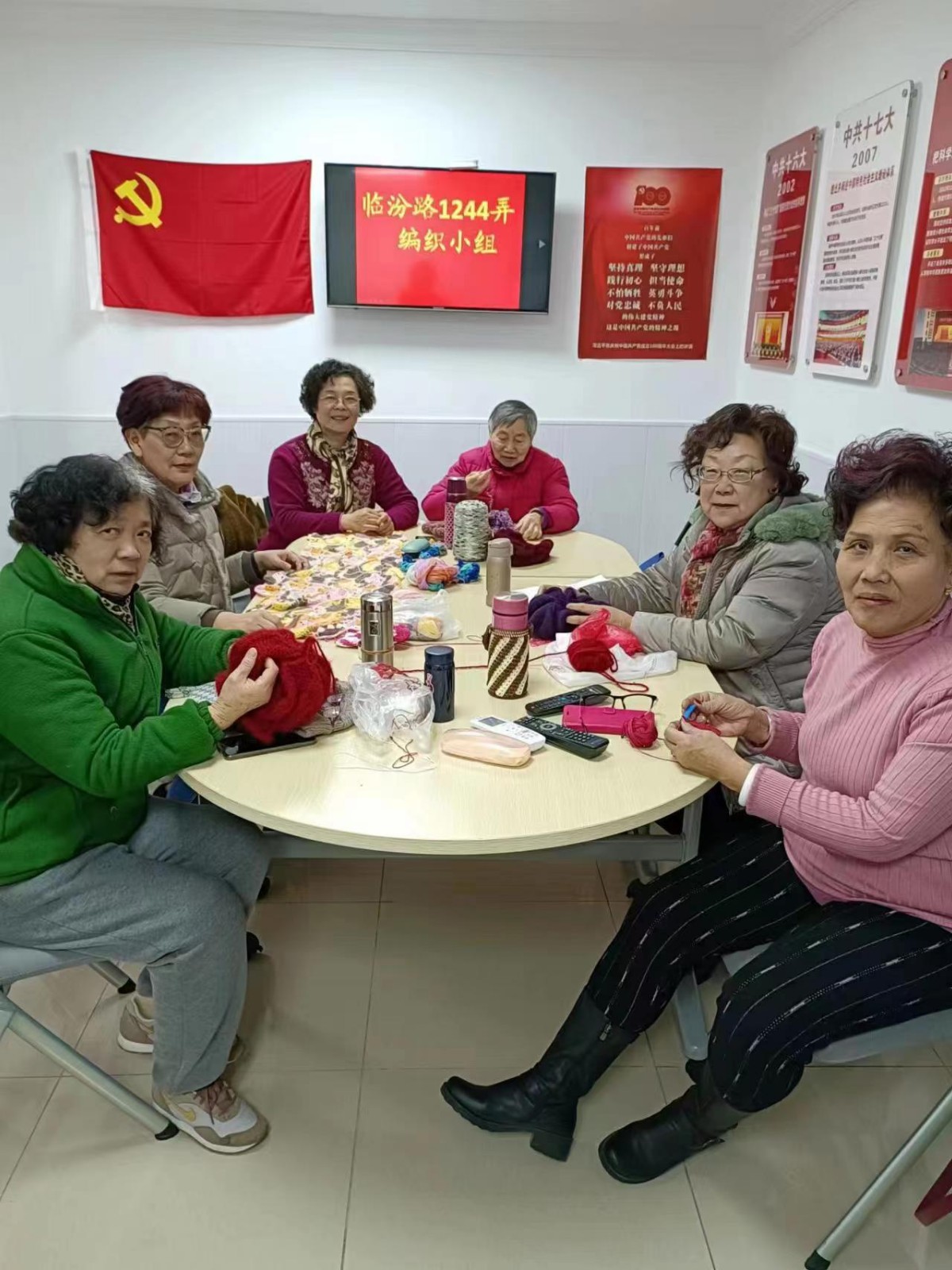 临汾路1244弄编织队,成立于2013年3月。该团队由社区内编织和手工爱好者自发集结而成,目前共10名团员。临汾路1244弄居民区编织团队成立至今,一直在社区党总支和居委会的大力支持下,在社区党员活动室进行活动。该团队采取自我学习的模式,每周定时定点活动一次。 临汾路1244弄居民区编织团队的主要任务是,带动社区离退休老人的手工和编织学习兴趣,为大家展示自我,手动能力和脑力活动。现在团队年级最大的学员已经72岁了,也在积极学习新的编织手法,为大家的日常活动带来极大的推动力,也为社区带来了积极向上的文化氛围。 经过成员长时间的沟通交流,如今的临汾路1244弄居民区编织团队是一支团结、和谐且充满荣誉感的团队。全体队员平时遵守训练时间,认真训练,相互学习,相互包容,与时俱进,力求可以向社区居民呈现更多新式编织方法,争取不断创新,努力用手工编织打造出多元化的手工成品,展现退休居民的文化风采,进一步为临汾路1244弄社区老年教育添砖加瓦。