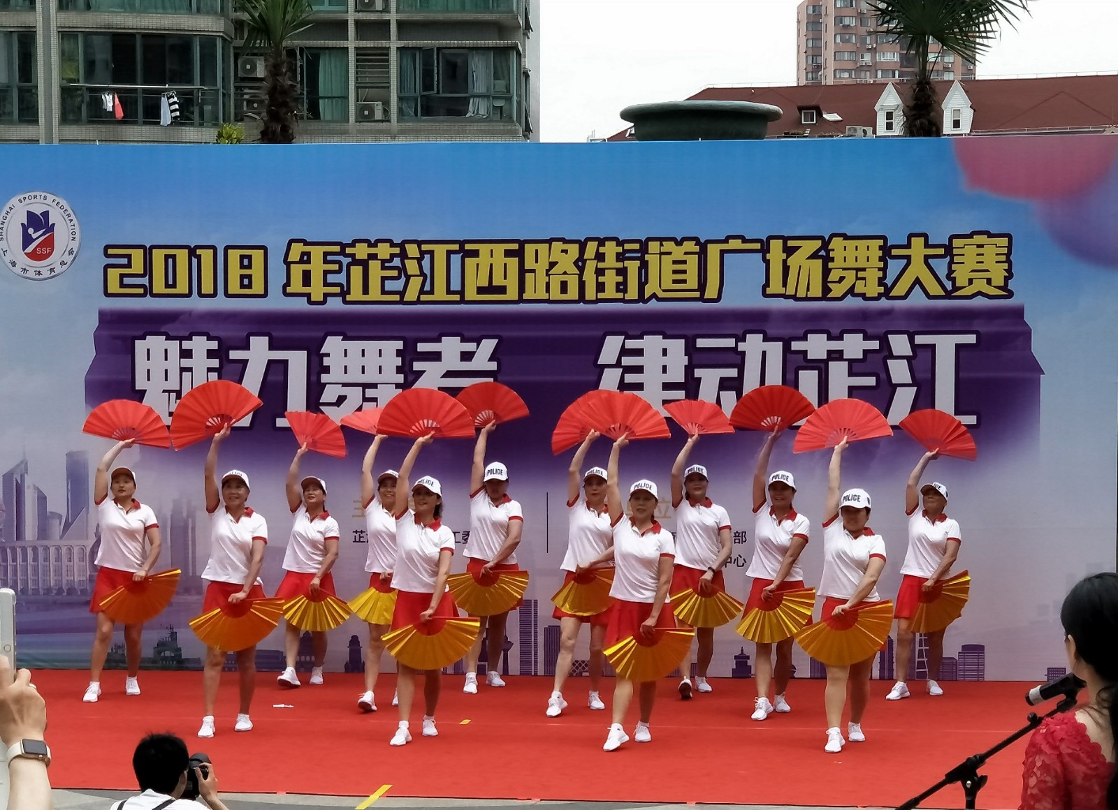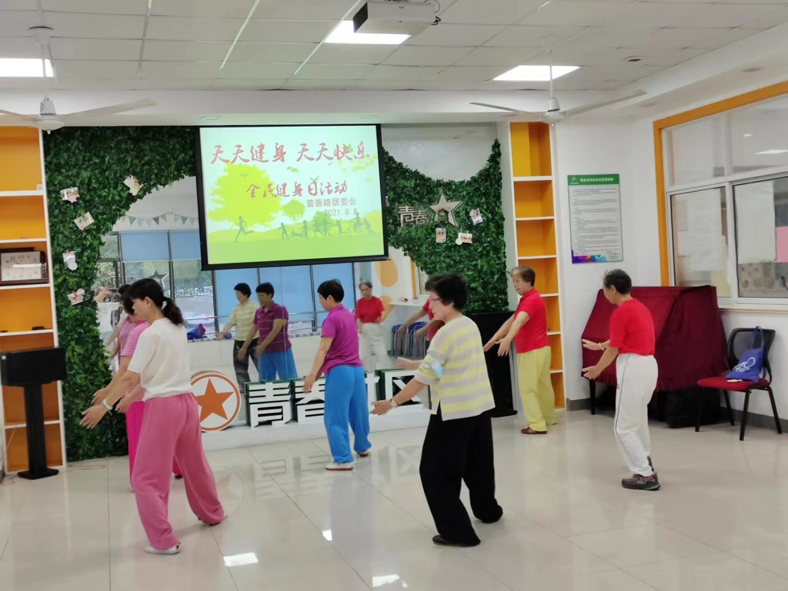 我们拳操队,不仅通过学习锻炼了身体,还积极参与区、街道组织的文体活动,派代表参与市里的观摩表演活动。2013年5月17日参加了首届上海市民文化节芷江西社区文艺团队展示,会上我们演出了太极拳花样24式。2013年、2014年连续二年参加闸北区大宁公园的全民健身气功交流活动展示。2015年10月16日参加芷江西街道排练杨氏太极拳段位制1--2套路均获得奖励。我们团队多次参与普善居委会的各类庆祝和文体活动同时也为街道敬老院慰问演出。