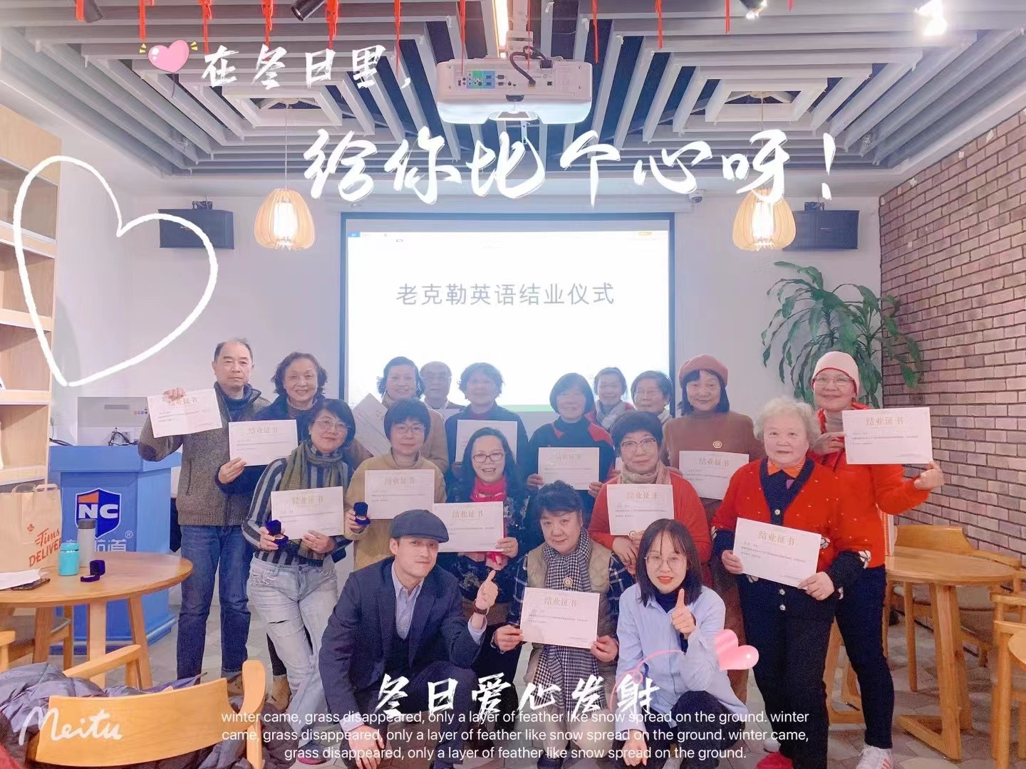 新航道老克勒英语学习小组成立于2019年3月,主要是招收退休且有一定英语语言基础的居民。学习内容主要是日常生活需要用到的英语。老克勒英语学习小组成立以来,收到了老年人的一致追捧,大家争相报名。以学习英语为目的,组员们在指导老师的召集下,进行交流分享,收获满满。