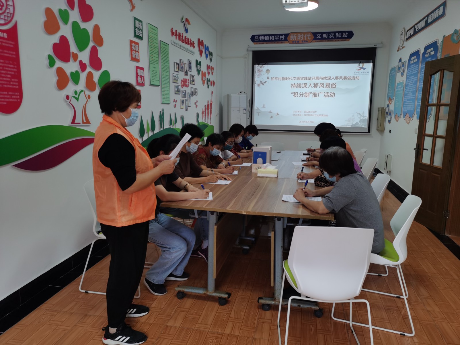 随着社区人口老龄化现象不断加重,为了更好地提升和平村老服务质量与水平,村党总支部引导老人积极参与学习活动,培厚老年人的精神土壤。村党总支部于2021年11月1日成立和平村讲和团志愿者队伍,并结合巷邻坊活动、睦邻点活动,贴合村民身边的事例引导村民团结互爱,互帮互助。队员由退休及在家务农的女性共10人组成。