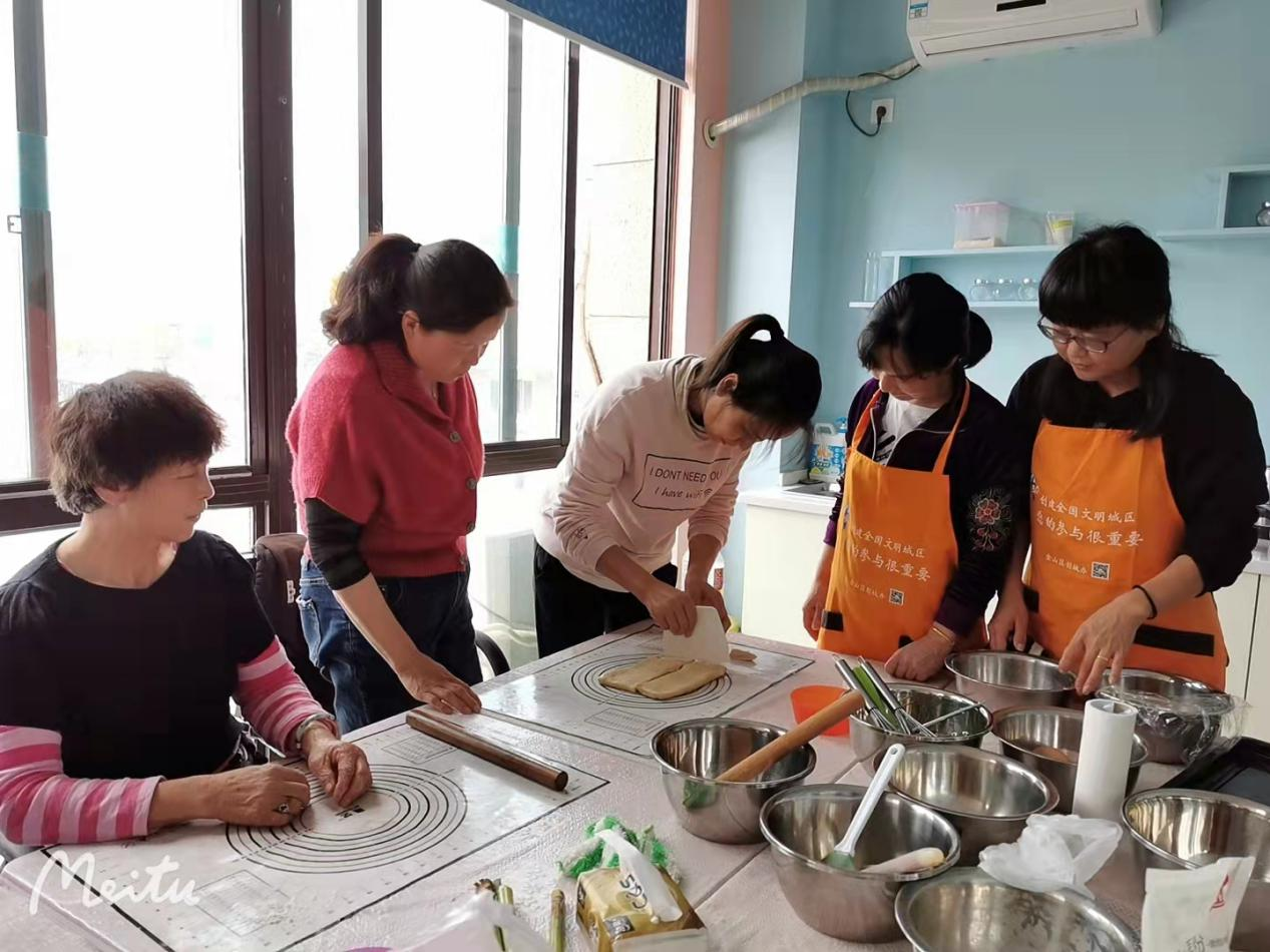 金韵烘焙队是辖区居民热爱的一个团队,烘焙老师是辖区的一个热爱烘焙的居民,每次上课都精心准备不一样的课程带给大家,她很愿意带领大家一起学习和进步。在这个“神奇”的烘焙室,大家围坐一起,做着烘焙、聊着天,寻找着快乐的回忆……烘焙给大家带来了很多乐趣,当大家投入到一堆工具和食材之中,细心地挑选、称量、过筛、搅拌、混合、烘烤,在这段时间里,大家的身心都会完完全全的融入其中。每一个成品出炉时大家都会相互品尝纷纷表示很有成就感。居民们在“烘焙班”里培养了兴趣,也认识了很多同性志趣相投的朋友,在烘焙室里展示和享用自己的成品,形成了良性循环。同时大家也会将在烘焙中学习到的成品分享给家人好友,向周边的人宣传烘焙的乐趣,烘焙能提升居民的幸福感。