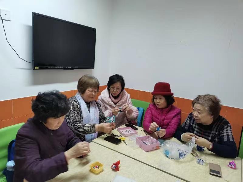 新苑五六七居委趣味穿珠珠小组成立于2002年,团队成员10名,老师和学员都是女性同胞,平均年龄60周岁以上,年龄最长者已超过80周岁。由小区居民自发组建,大家有相同的兴趣爱好组建了这个团队,每次活动都有新的创意,从简单的手机卡套、包包挂件到难度较高的摆放工艺品,通过她们的巧手,都能够富于它们新的生命力。