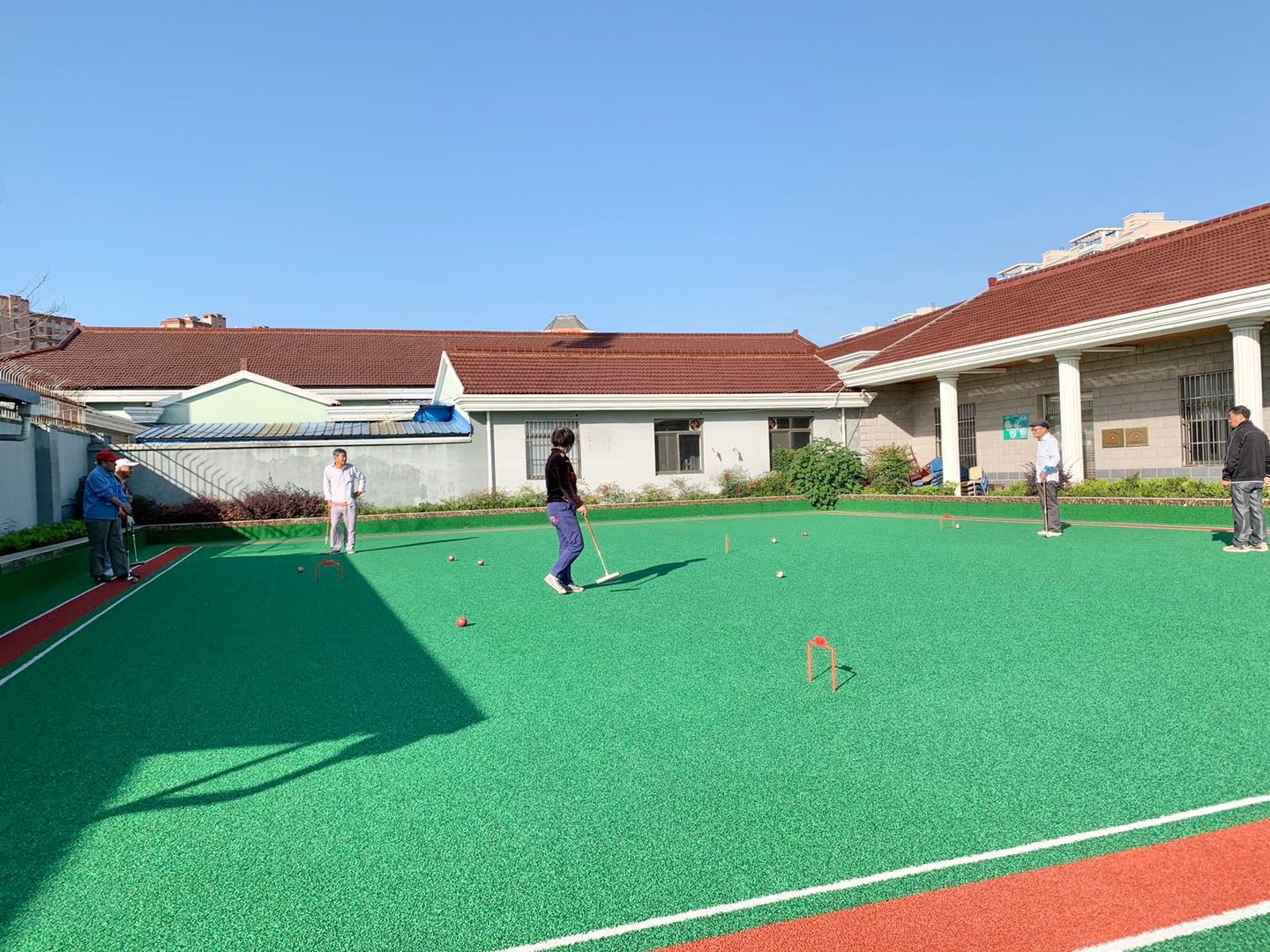 胜利村门球队成立于2008年,现胜利村门球队总人数为7人,平均年龄在75周岁,有一名团队负责人,一名指导老师,。门球队的队员们都是爱好运动的村民聚集在一起的。是一个团结友爱、充满活力的团队。在胜利村绿色的人工草坪上,基本上每天早上都能看见老人们认真练习的身影。主要是学习挥杆、送球、击球、过门等专业技巧。老年朋友们共同切磋球技,共商进球策略。 胜利村门球队曾多次参加浦江镇的门球赛事,获得了许多奖状。每一场比赛,我们的队员们都卯足了劲,发挥出我们团队的力量。2018年11月胜利村还组织开展了“门球邀请赛”,邀请了浦江镇其他门球队参加比赛,通过与兄弟团队切磋球艺,大家相互学习,共享门球带来的欢乐。 胜利村门球队的队员们还是一群热心的志愿者,在平时也参与到村里的其他工作中,比如垃圾分类志愿活动,人居环境整治志愿活动等。 如今门球这项运动在胜利村越来越受到老年朋友的追捧,门球场也成为了很多老年人经常都要光顾的活动场地,大家不仅锻炼了身体,更结交了很多志同道合的球友,充实了退休后的业余生活。自胜利村门球团队成立以来,在不断的完善发展,队员们在多年刻苦训练下,也在不断进步和成长,希望在未来能让越来越多人了解到门球运动的魅力,参与到全民锻炼中。