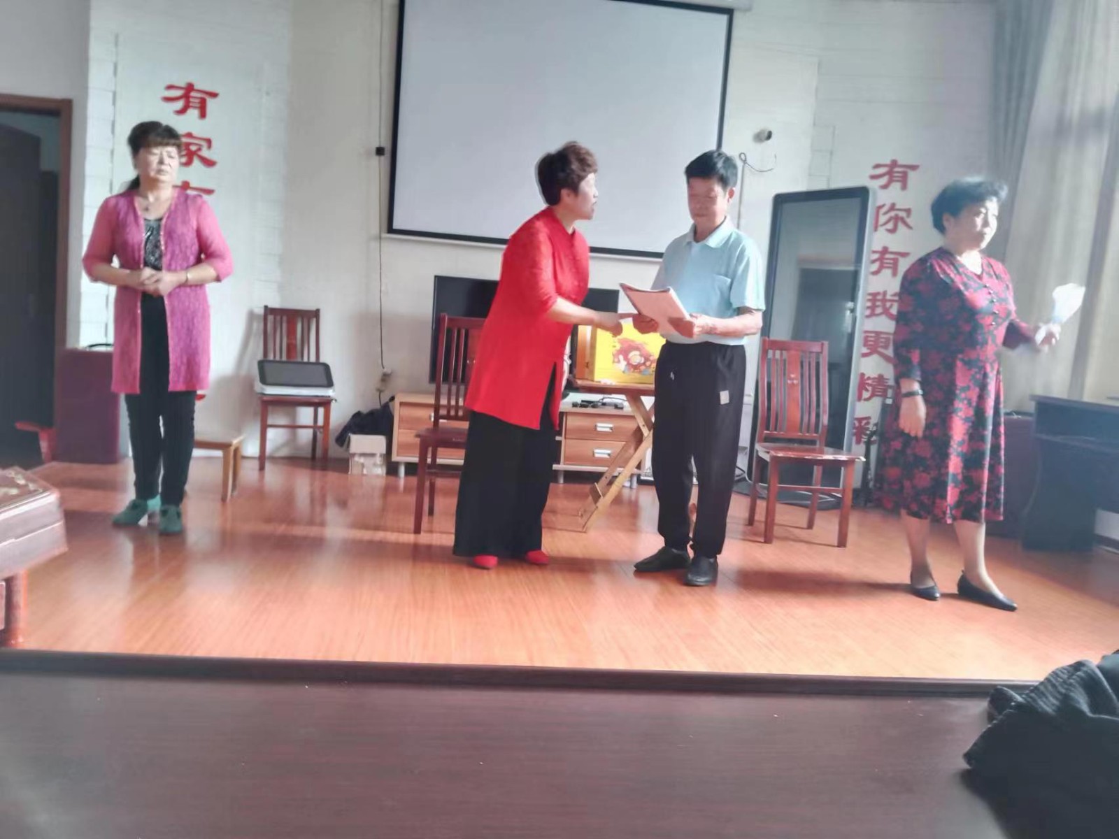 二、本团队团结协作,共同提高。为了不断提高演出的质量, 保持团队的生命力。近年来,团队不断地吸取年轻人员参加。团队骨干不计较得失,无保留的帮助训练、辅导年轻成员,便之迅速成长。几年来,团队团结协作 ,很好的完成了各项任务,特别在宣传本镇中的重大事件上做出了重要贡献。他们排演的清音小戏很好的宣传了政策,得到了居民的欢迎。多以全新的创作节目为全镇居民作宣传演出,取得了较好地社会效果。